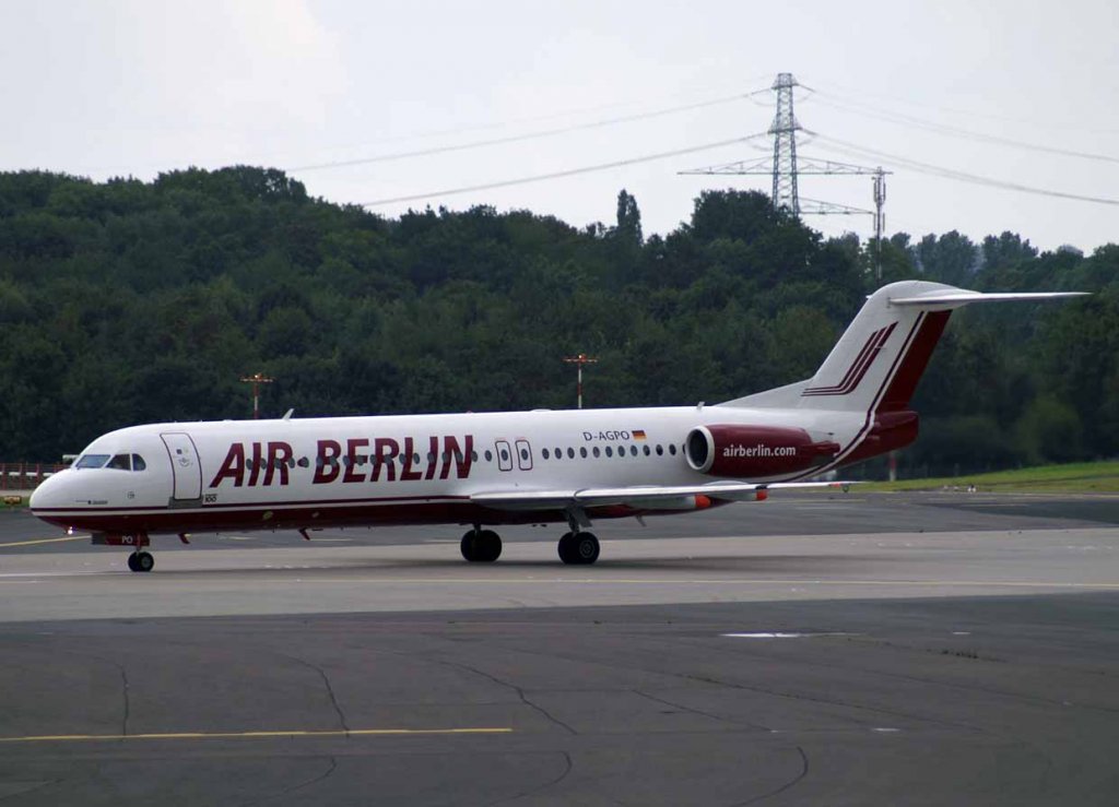Air Berlin Fokker 100 D-AGPO im Landeanflug auf die Runway 26R Berlin TXL 16.09.2007