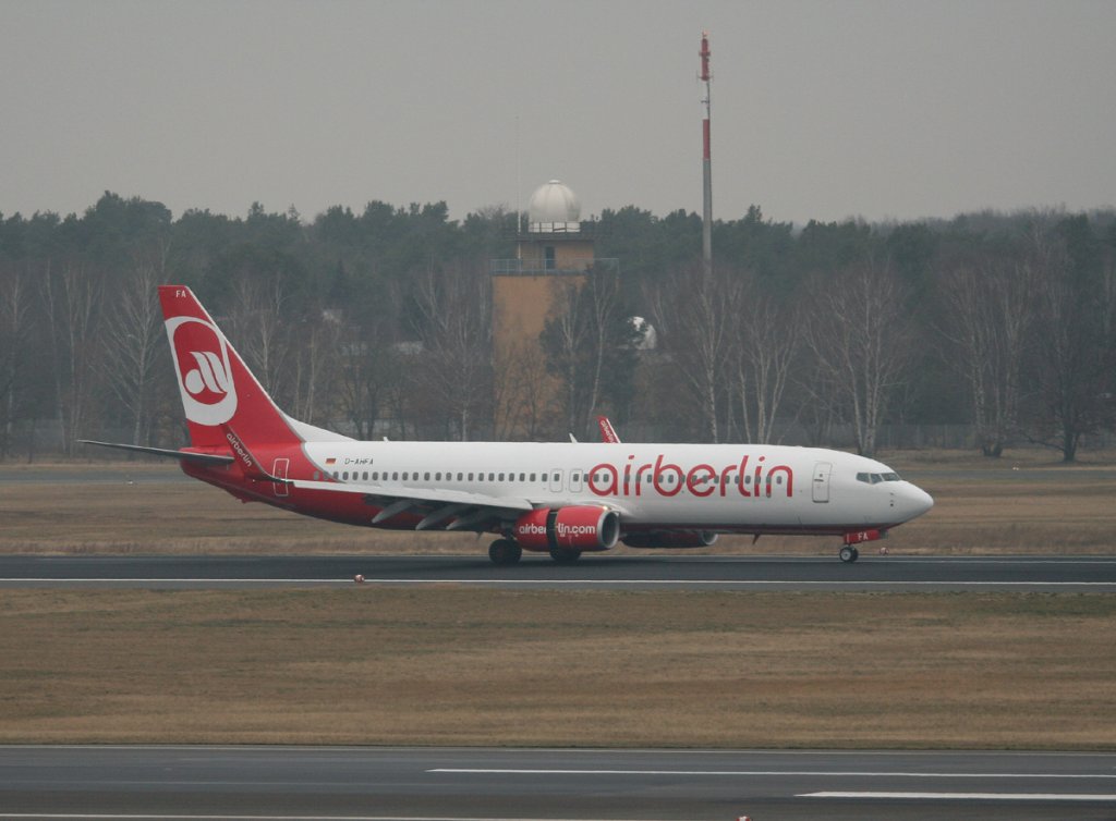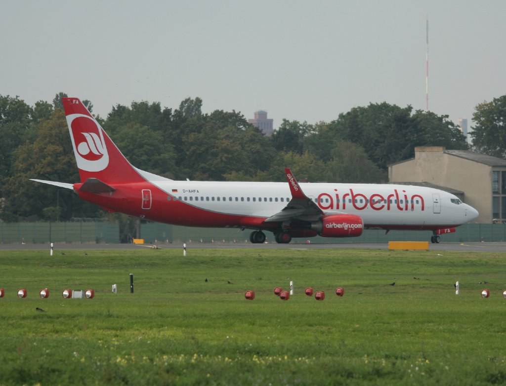 Am 27. August 2011 rollte die D-AHFA vom Terminal 1 zur Runway auf dem Flughafen der Insel Sylt. Die D-AHFA ist die erste gebaute B737-800 und wurde beim Zeitpunkt der Aufnahme im Wetlease von Tuifly für Air Berlin eingesetzt. Nahne Johannsen