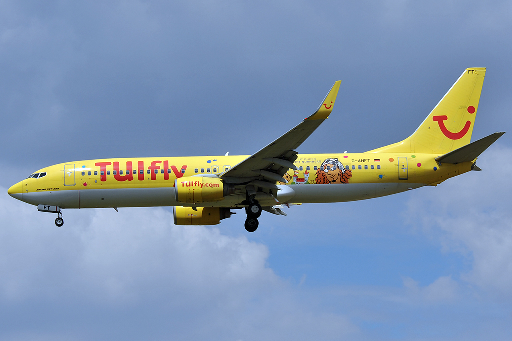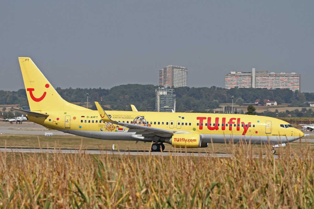TUIfly (X3-TUI), D-AHFT, Boeing, 737-8K5 wl (Airport Nürnberg-Sticker), 10.09.2016, EDDS-STR, Stuttgart, Germany