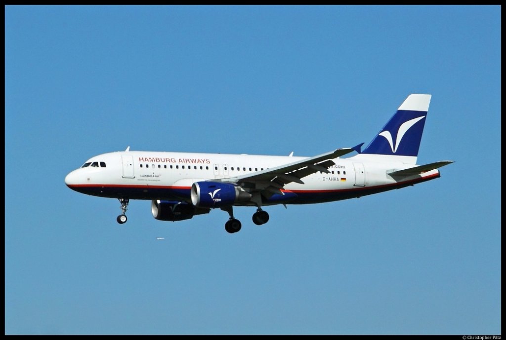 Hamburg Airways Airbus A319-112 D-AHHA, aufgenommen am 15.7.2013