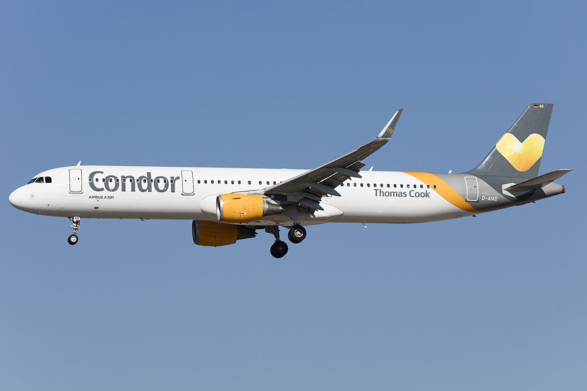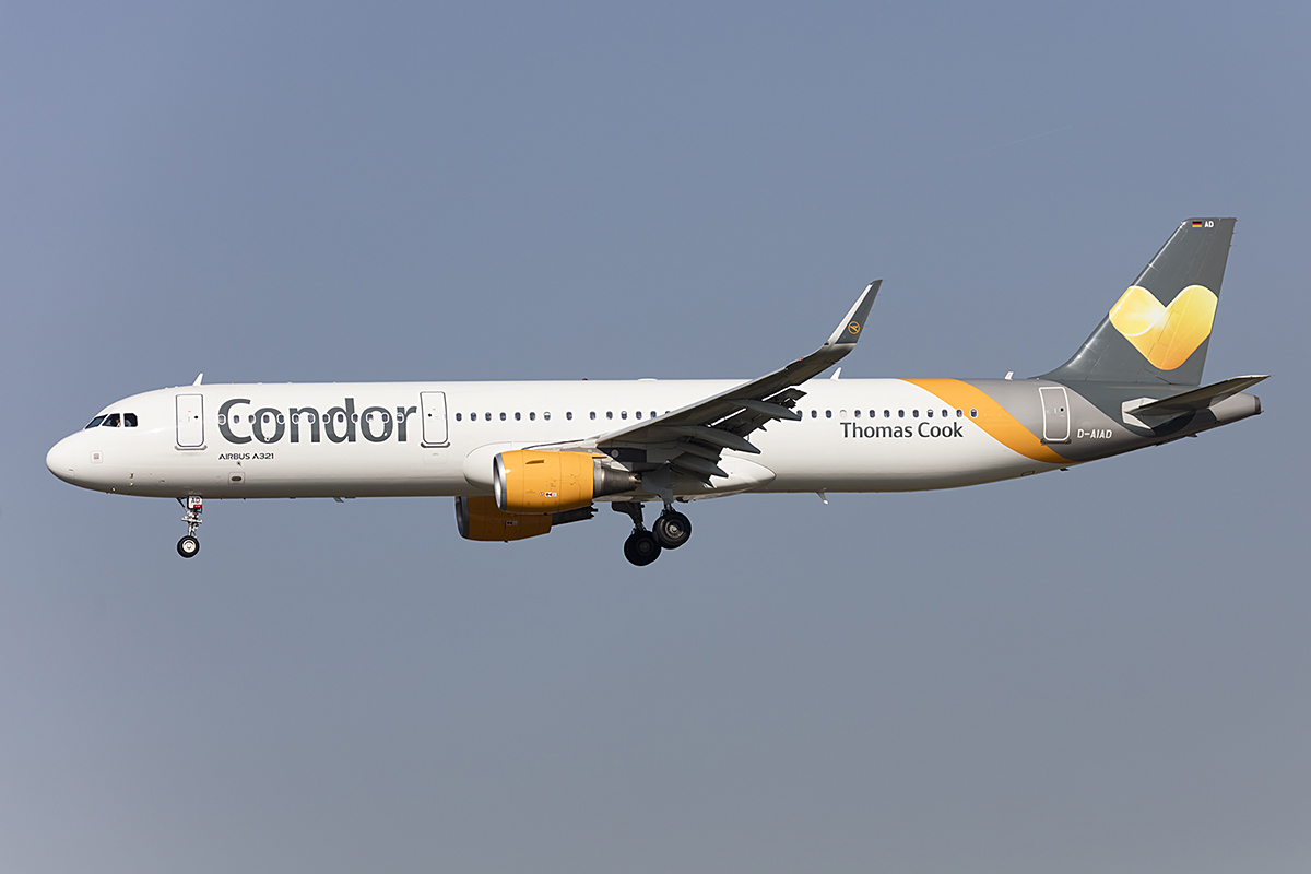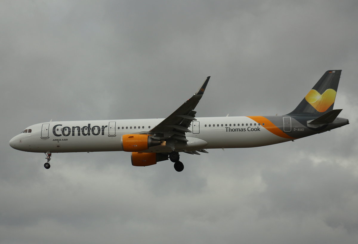 Airbus A321 (Condor, D-AIAD) erreicht mit dem Flug aus Palma de Mallorca den Flughafen Leipzig/Halle. Fotografiert am 31.05.2014. Christian Geschonneck