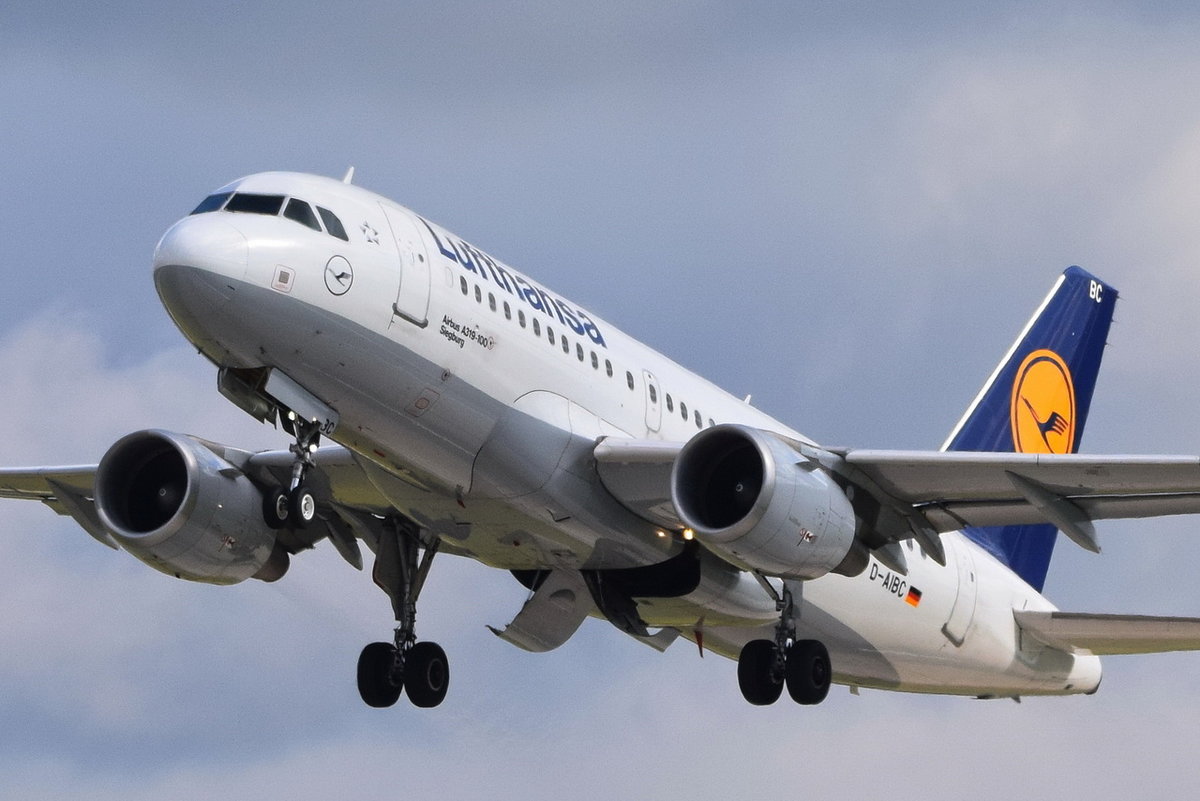 Lufthansa Airbus A319-112 D-AIBC beim Start in Düsseldorf 3.8.2019