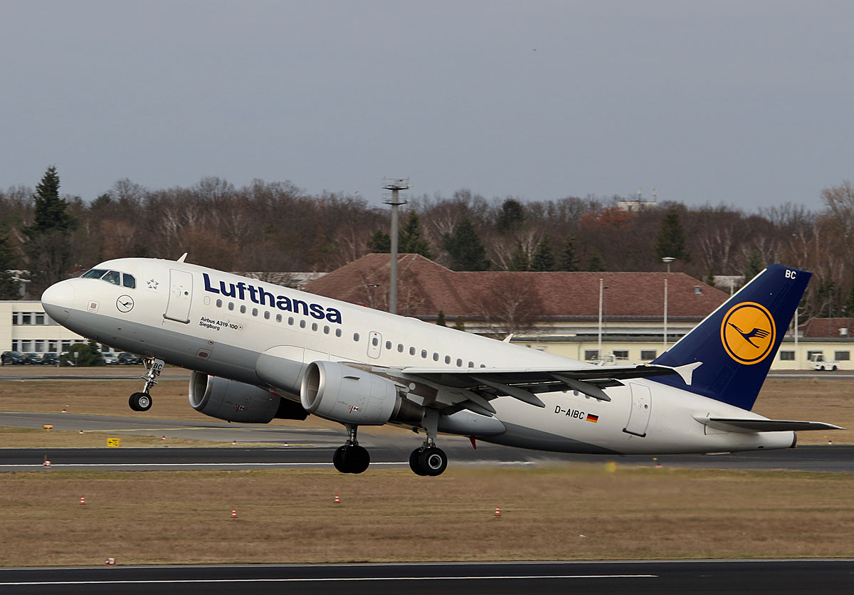 D-AIBC Lufthansa Airbus A319-112 "Siegburg" in München beim Start am 11.12.2015