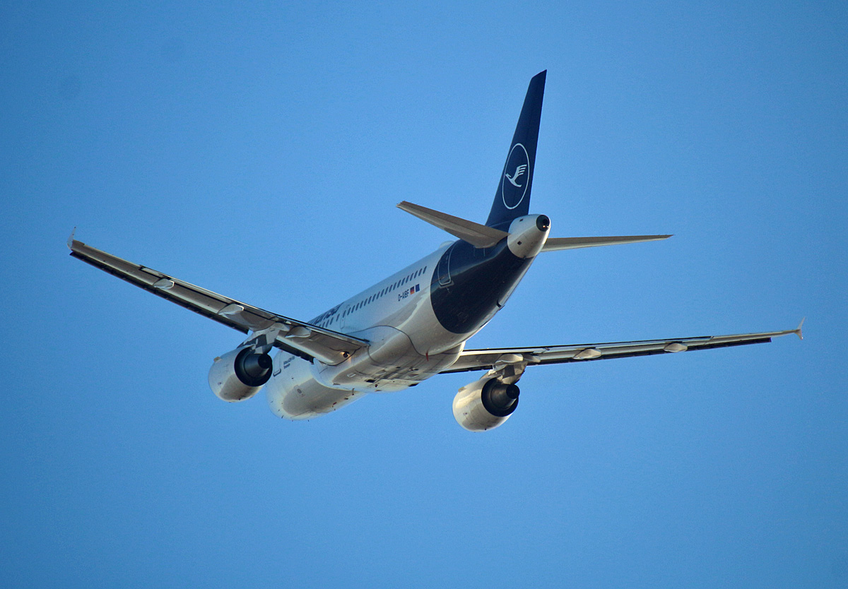 Lufthansa Airbus A319-112 D-AIBF beim Start in Düsseldorf 19.1.2020