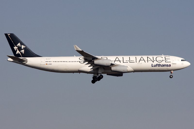 Lufthansa Star Alliance A340-300 D-AIGC im Anflug auf 25L in FRA / EDDF / Frankfurt am 19.08.2010