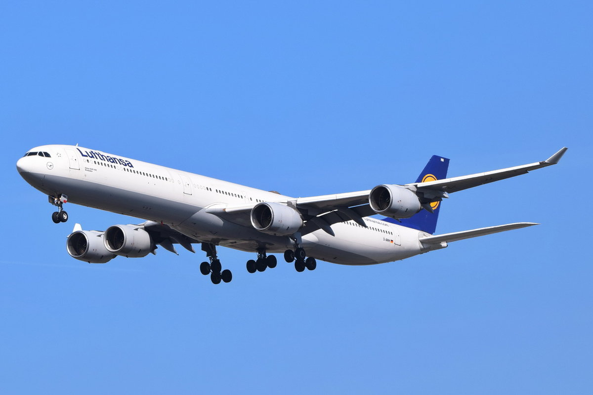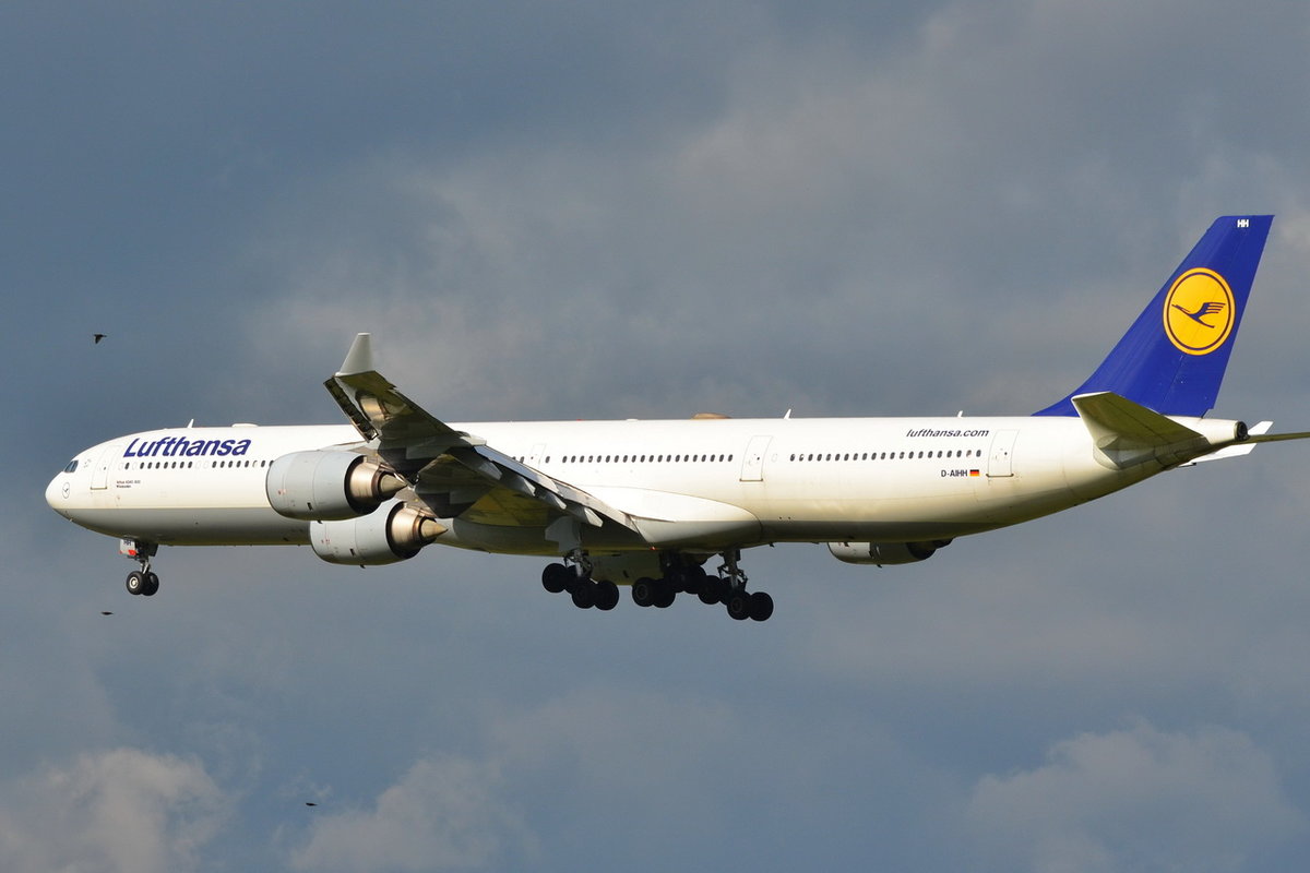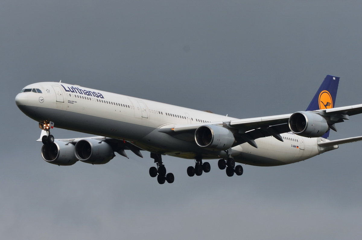 D-AIHH Lufthansa Airbus A340-642  Wiesbaden  in München beim Landeanflug am 19.05.2016
