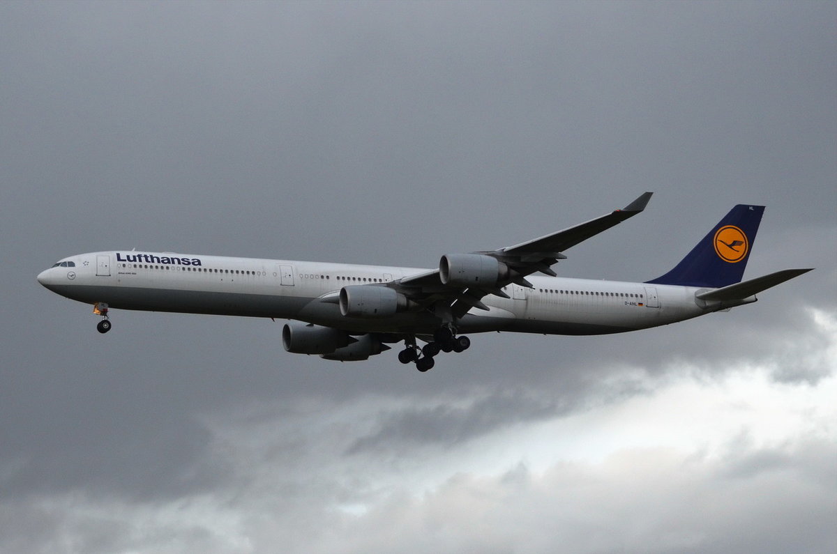 D-AIHL Lufthansa Airbus A340-642  Saarbrücken   in München am 07.12.2015 gestartet