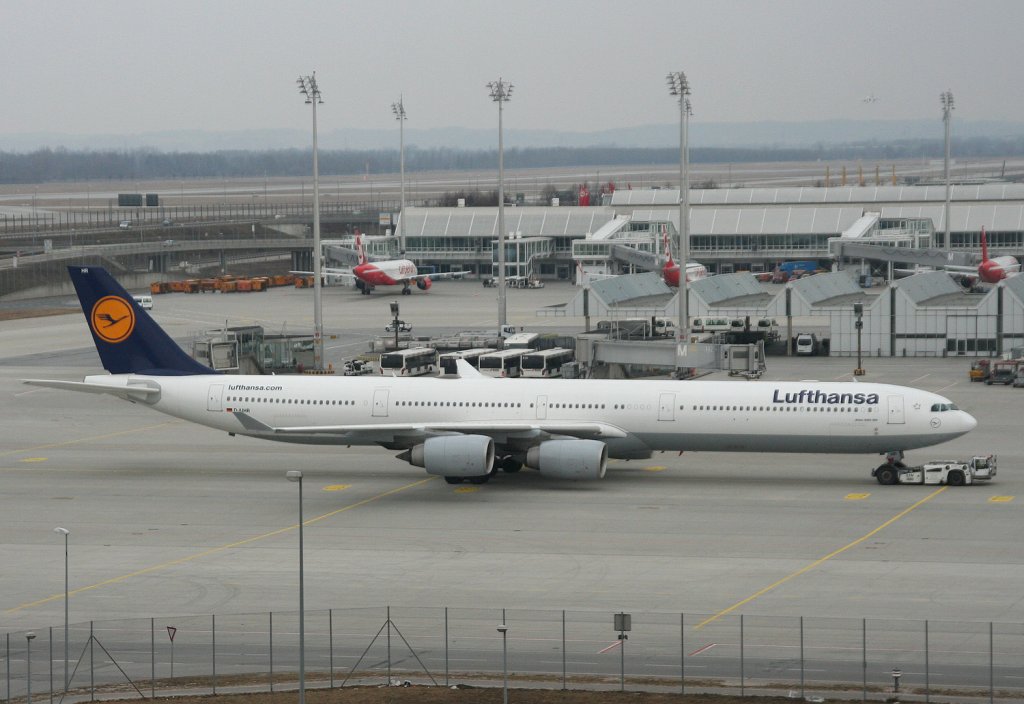 D-AIHR Lufthansa Airbus A340-642   in München im Schlepp  12.05.2015