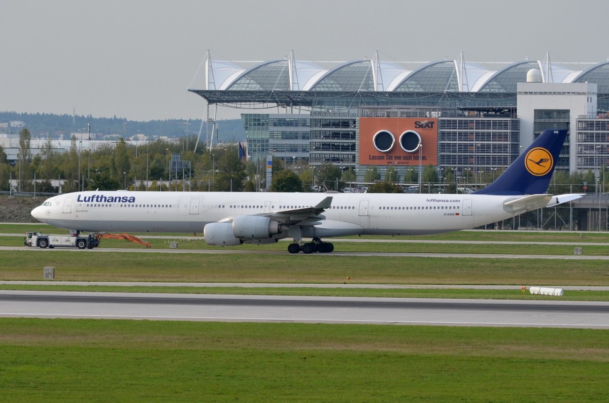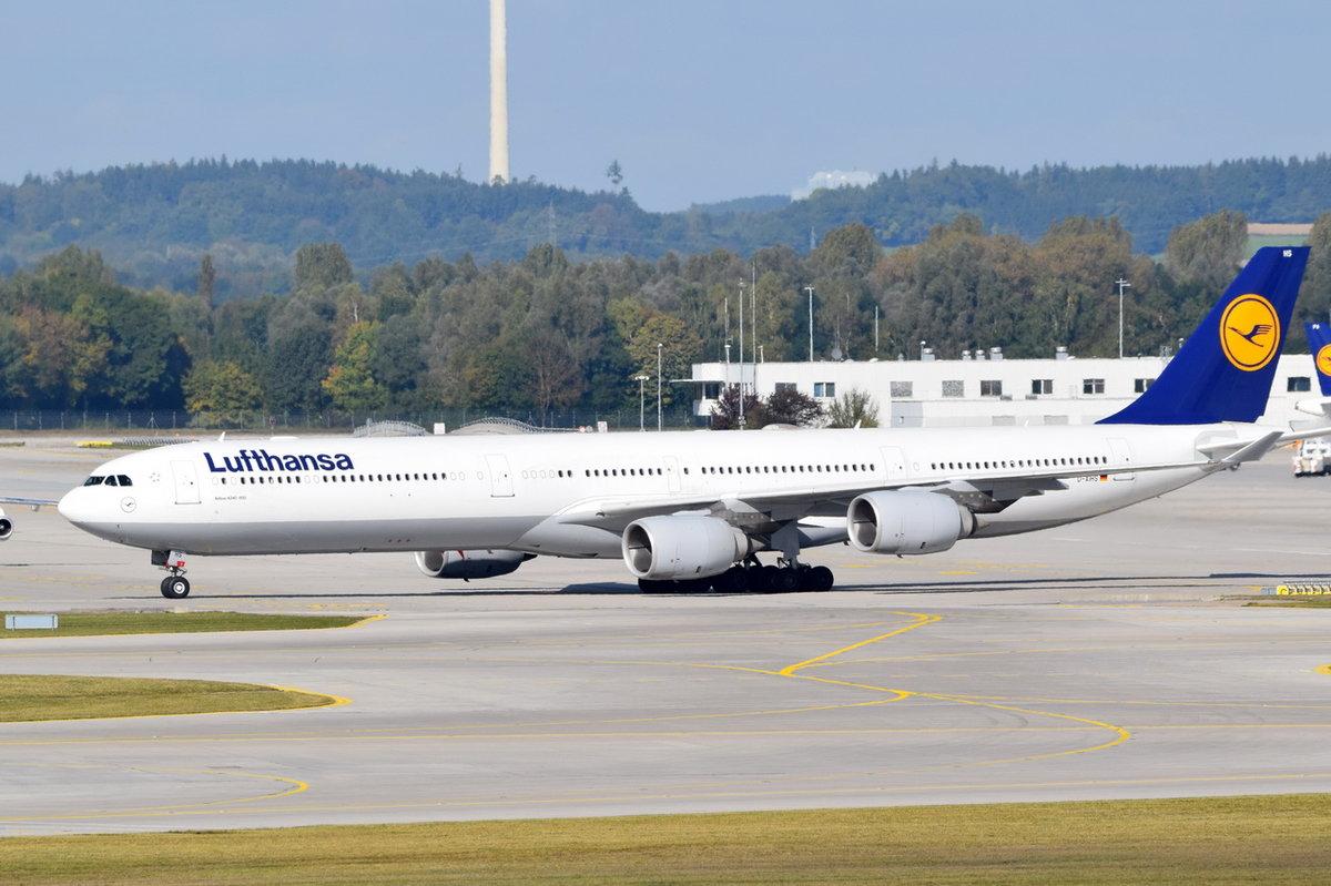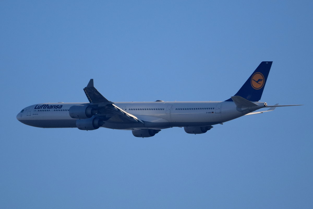 D-AIHS Lufthansa Airbus A340-642  beim Start in München am 10.09.2015