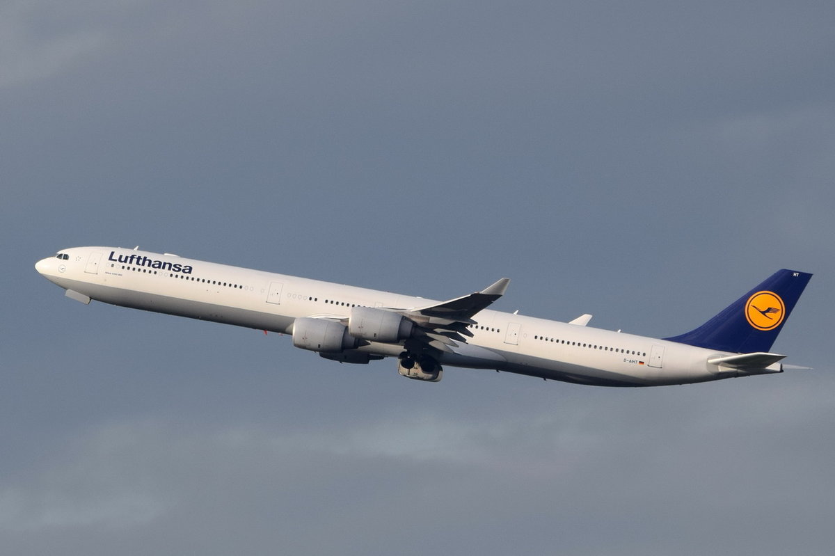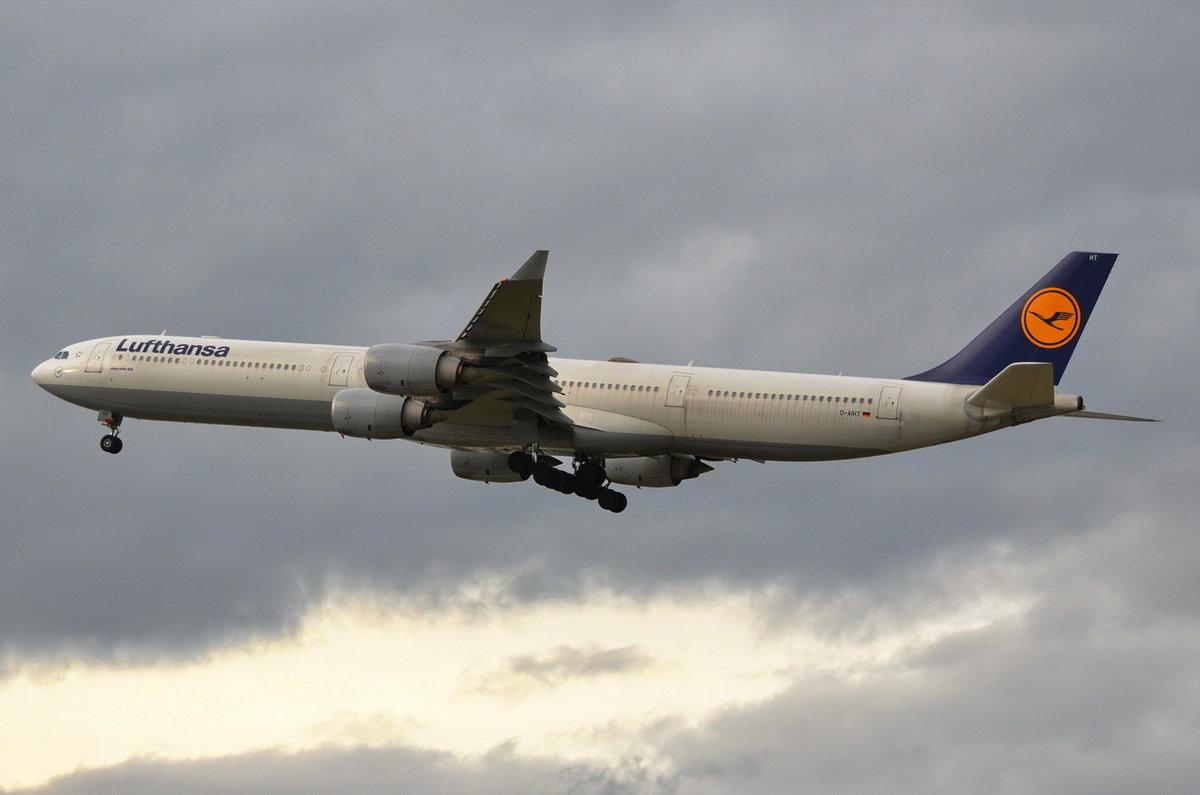Lufthansa A340-600 D-AIHT erreicht den Frankfurter Flughafen am 03.03.2024