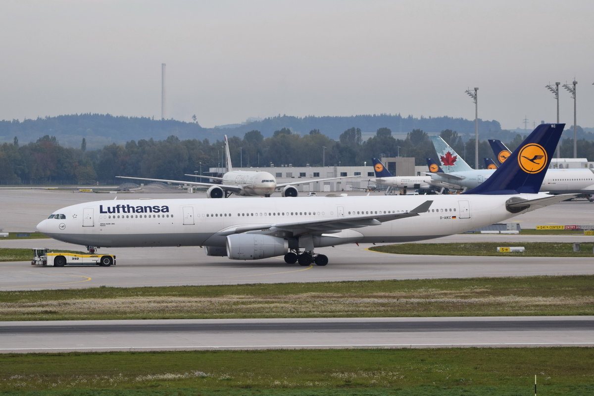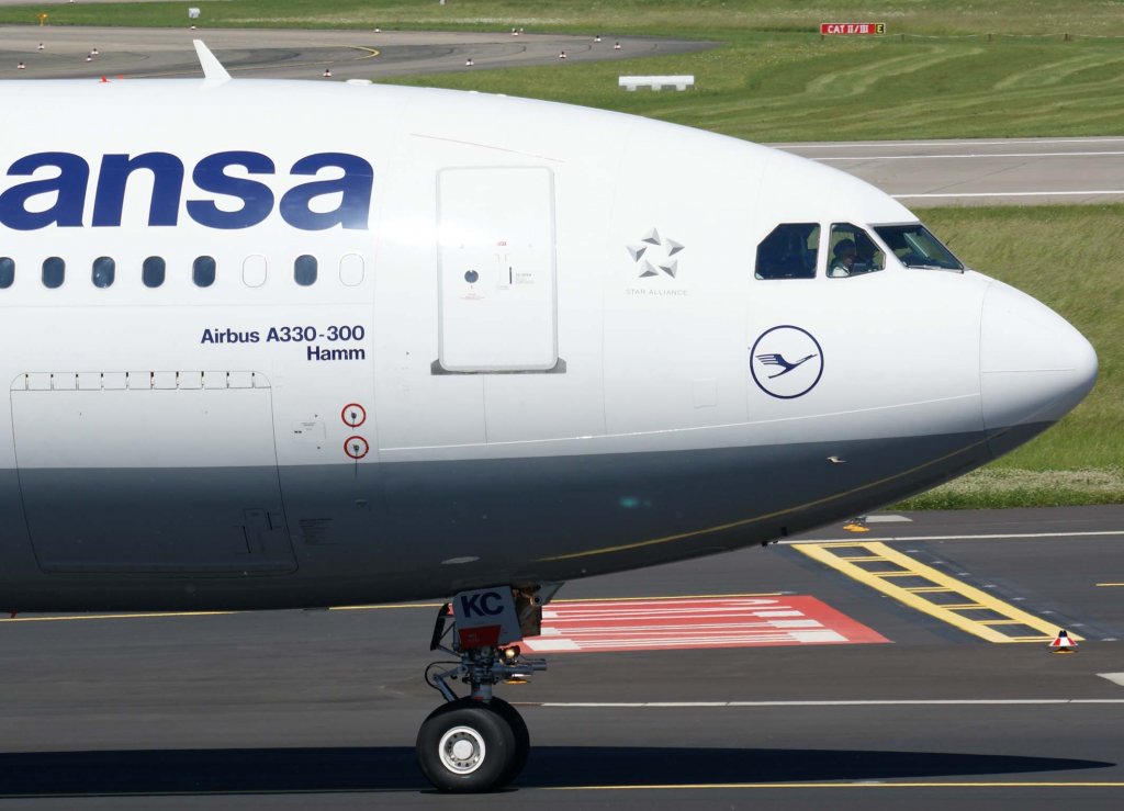 Alltag in Düsseldorf, im Vordergrund: CityLine; D-AECR; Embraer ERJ-190-100LR, und im Hintergrund: Lufthansa "Hamm"; D-AIKC; Airbus A330-343X. Flughafen Düsseldorf. 10.05.2010. Robert Viktor