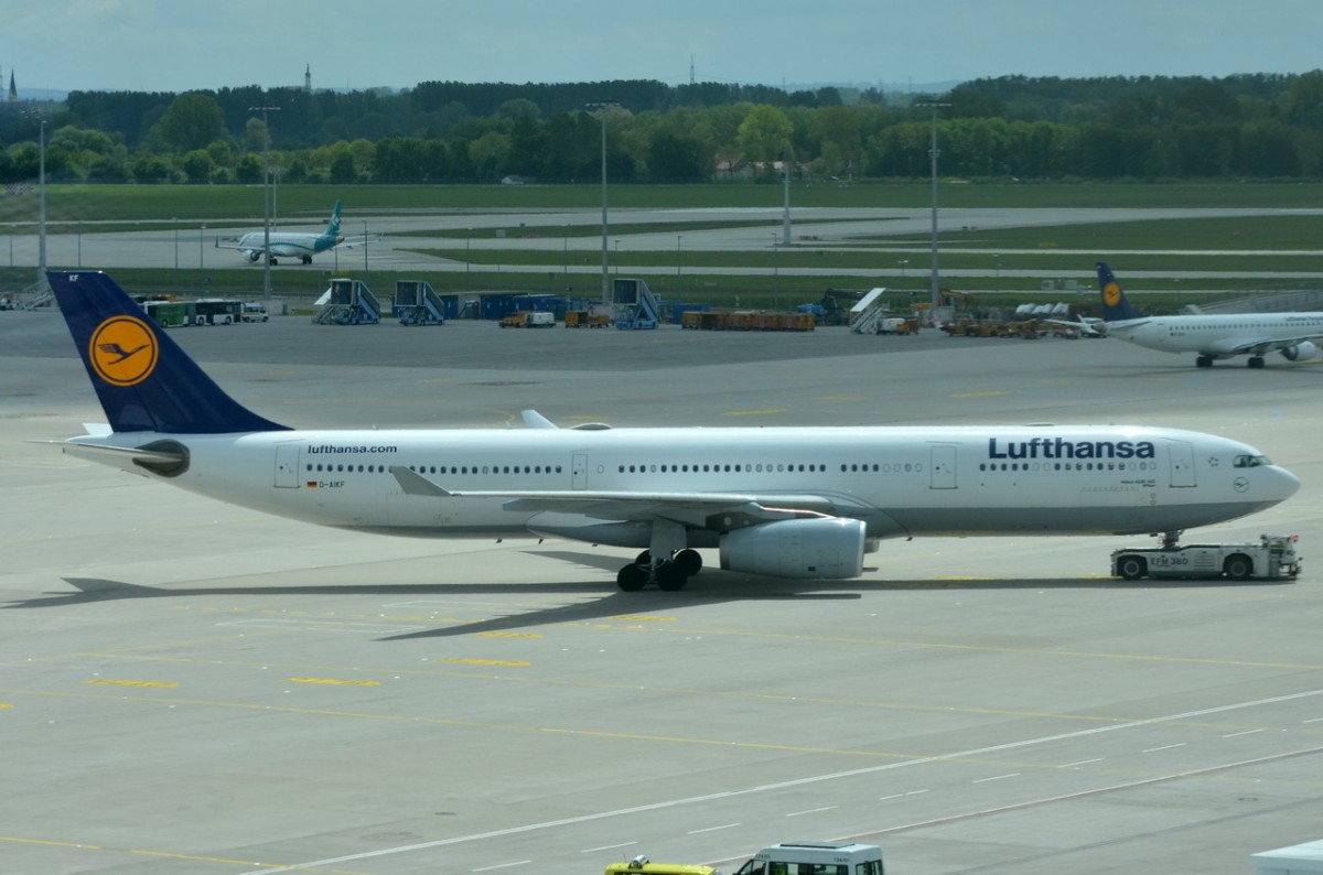 D-AIKF Lufthansa Airbus A330-343  Witten  geschleppt zum Gate in München am 10.05.2015