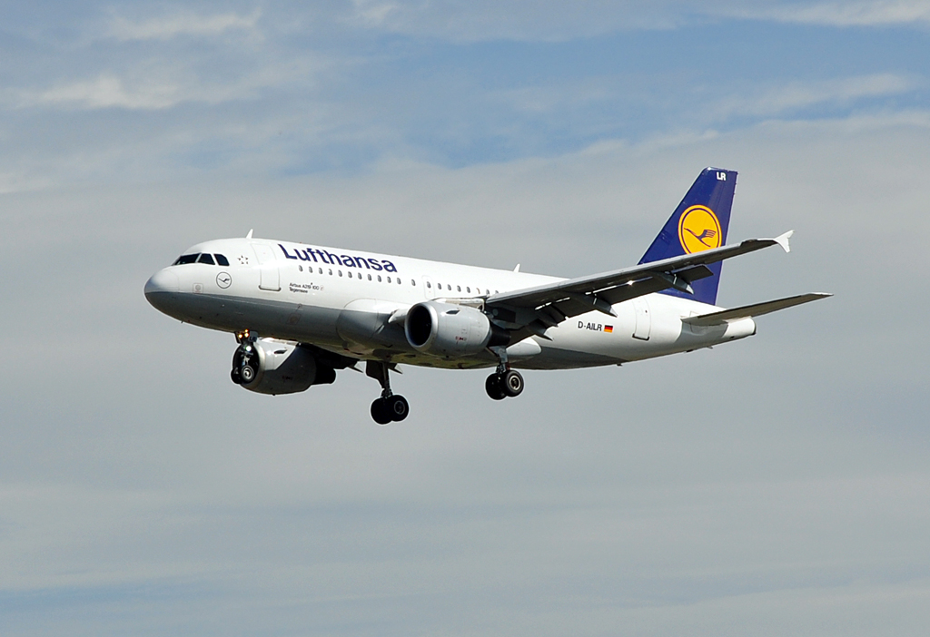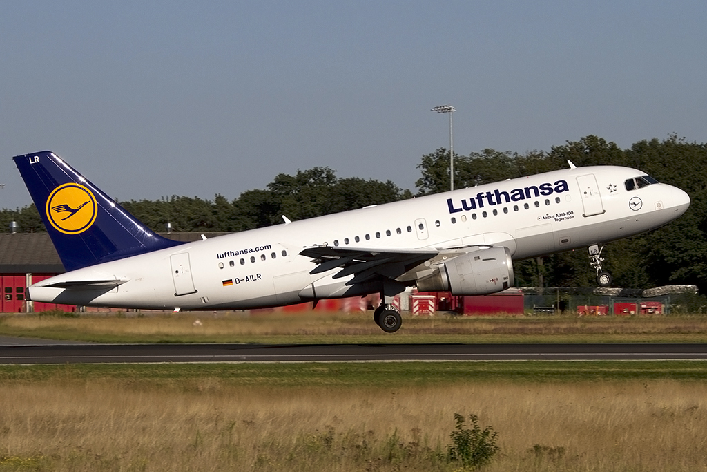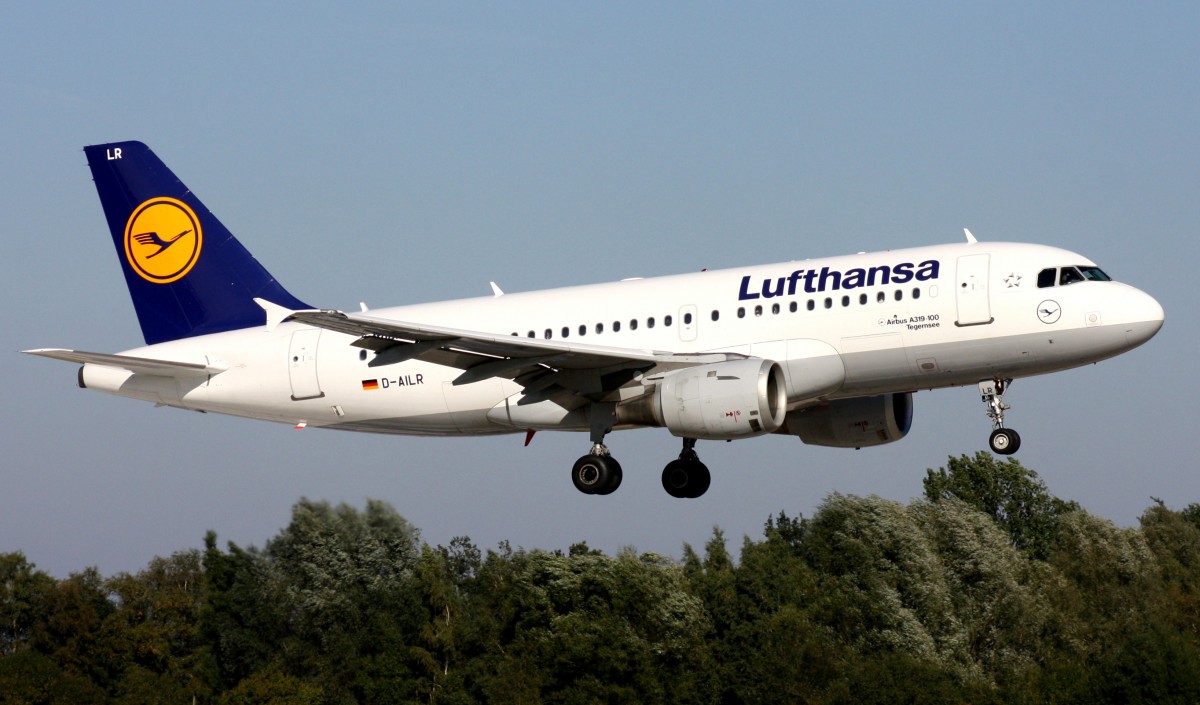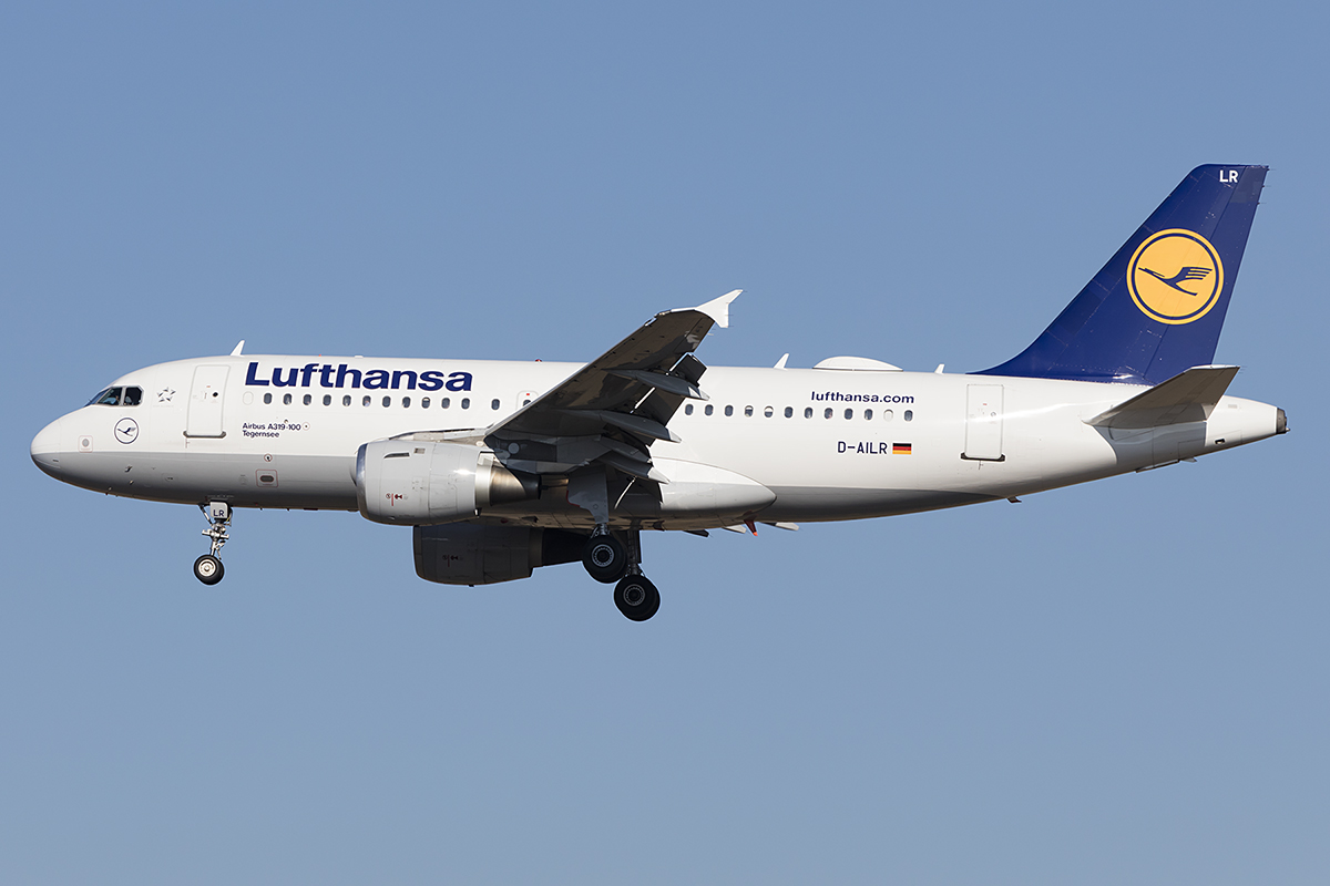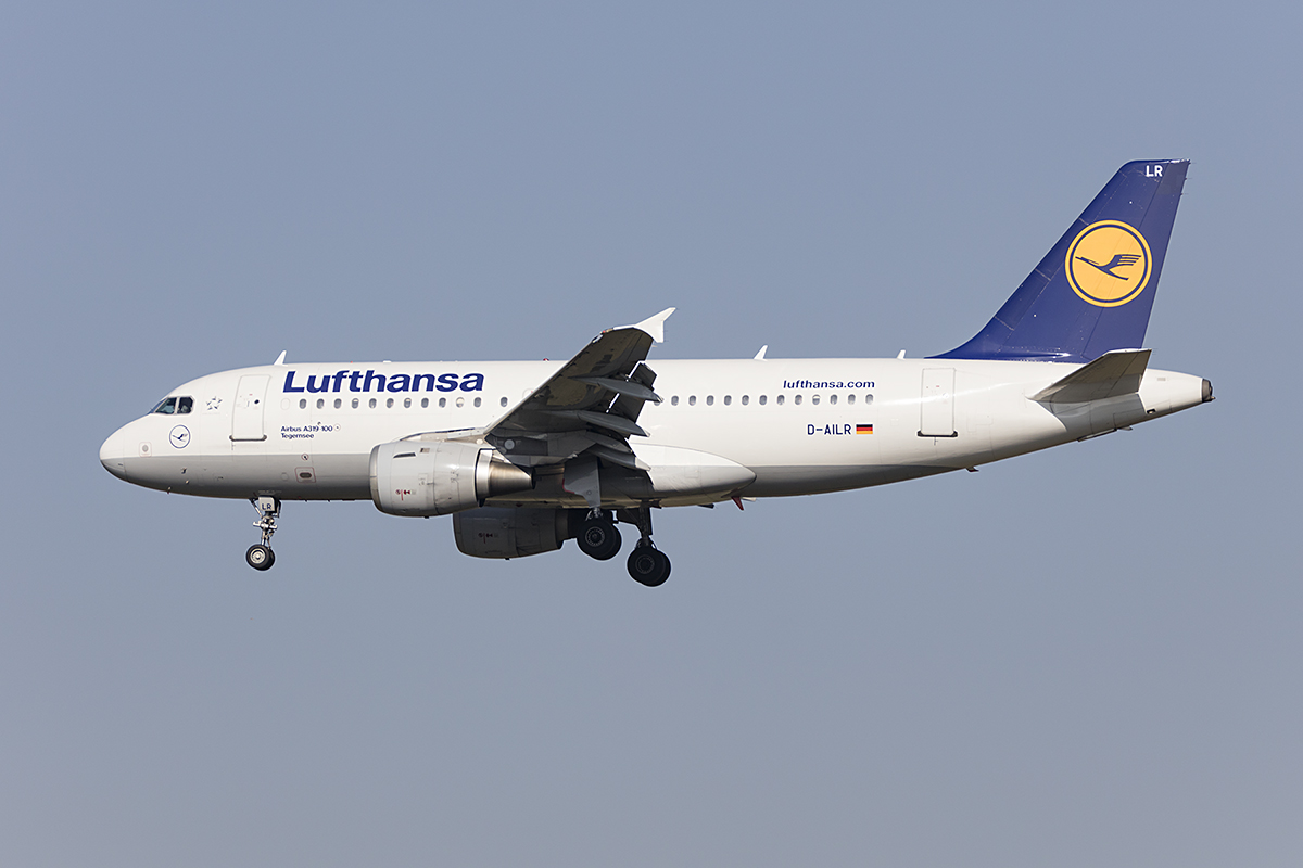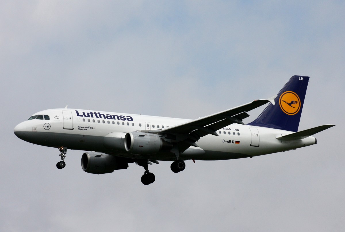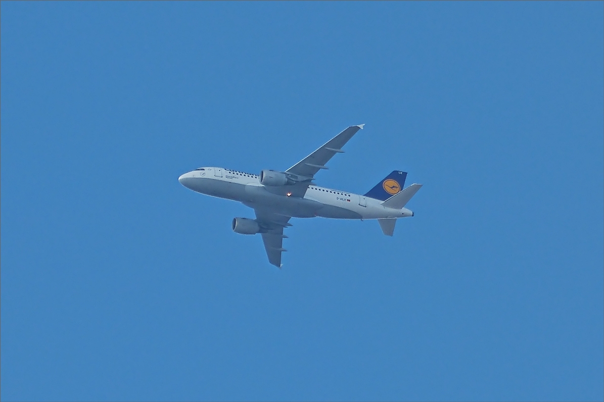 . D-AILR, Lufthansa Airbus A 319-114 (Tegernsee) ist vor kurzem in Frankfurt gestartet und überfliegt den Bahnhof von Hanau. 28.02.2015 De Rond Hans und Jeanny