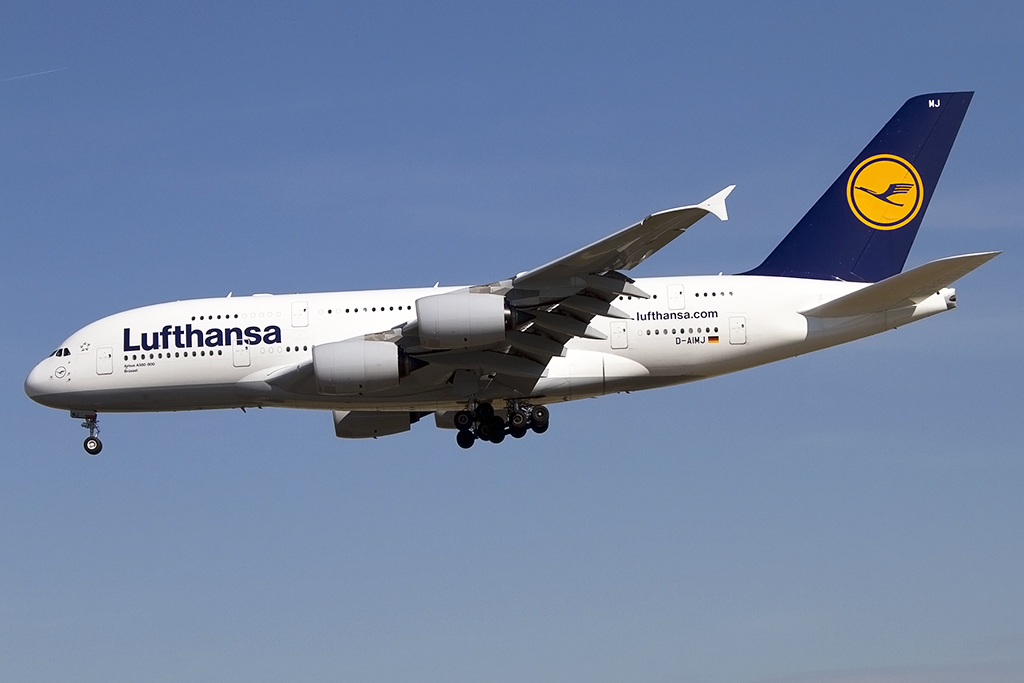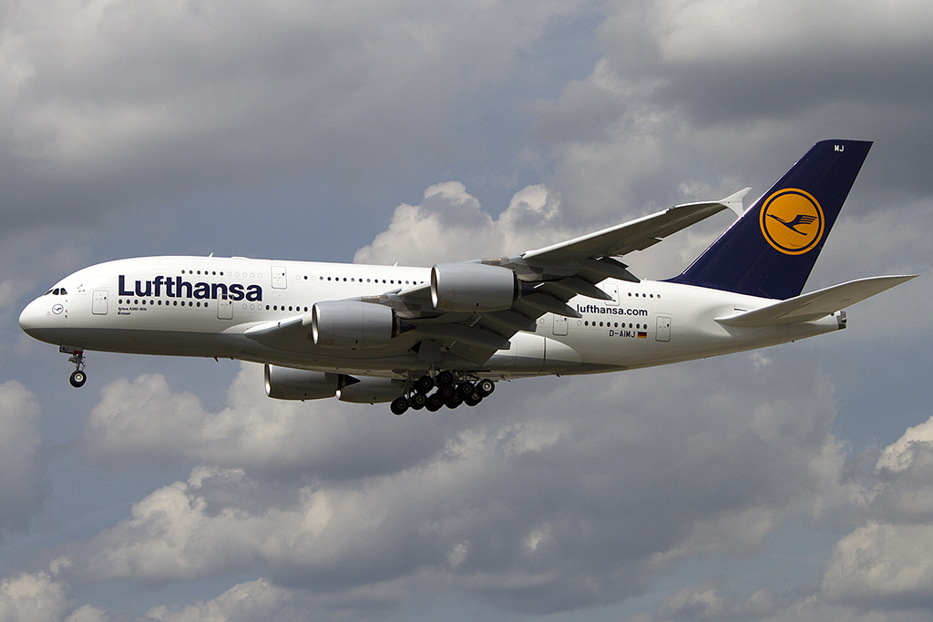 Lufthansa A 380-841 D-AIMJ "Brüssel" bei der Landung in Frankfurt am main am 16.08.2012