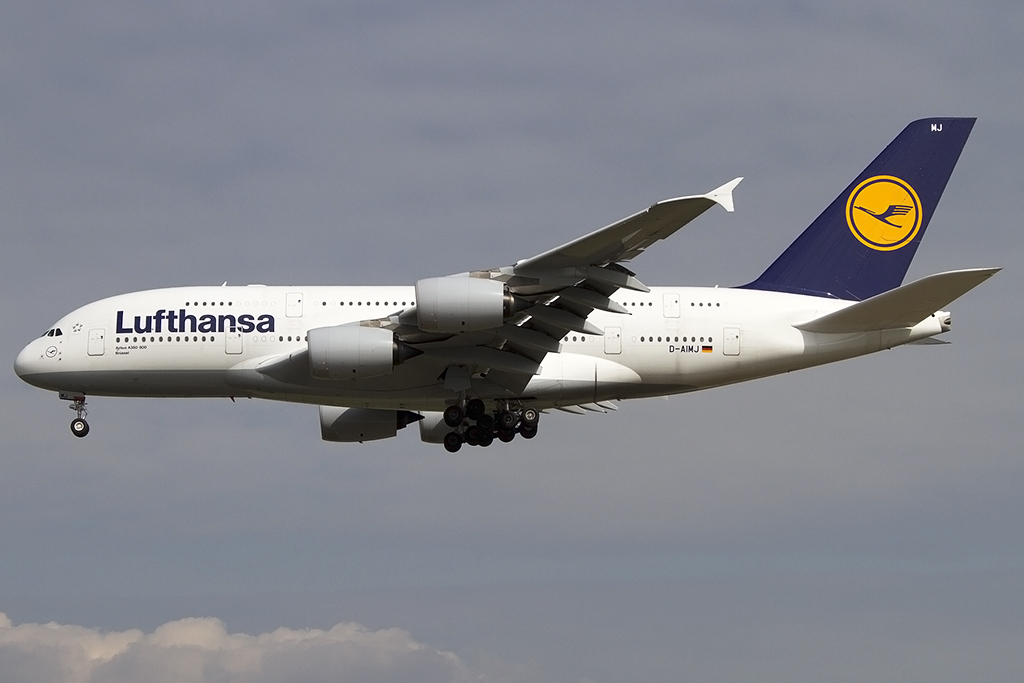 D-AIMJ Lufthansa Airbus A380-841  Brüssel   beim Landeanflug in Frankfurt am 06.08.2016