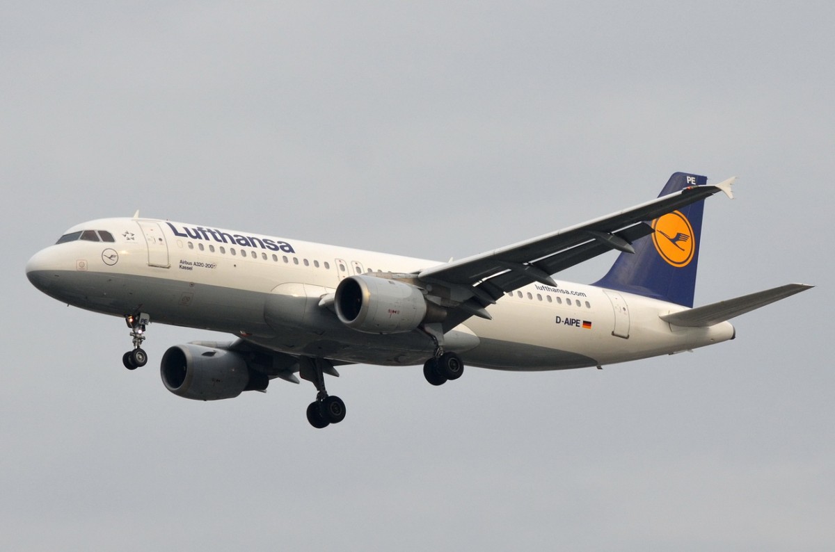 Lufthansa A 320-211 D-AIPE "Kassel" bei der Landung in Berlin-Tegel am 09.05.2014