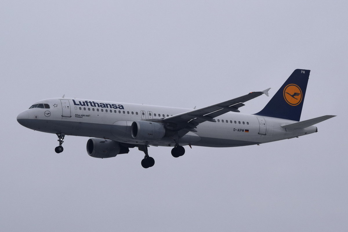 Lufthansa A 320-211 D-AIPM  Troisdorf  bei der Landung in Berlin-Tegel am 13.02.2014