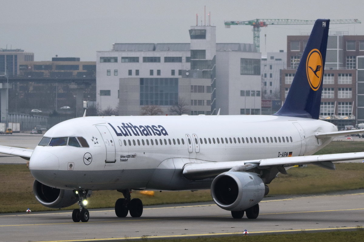 Lufthansa A 320-211 D-AIPM "Troisdorf" auf dem Weg zum Start im morgenlichen Nebel des 25.03.2012