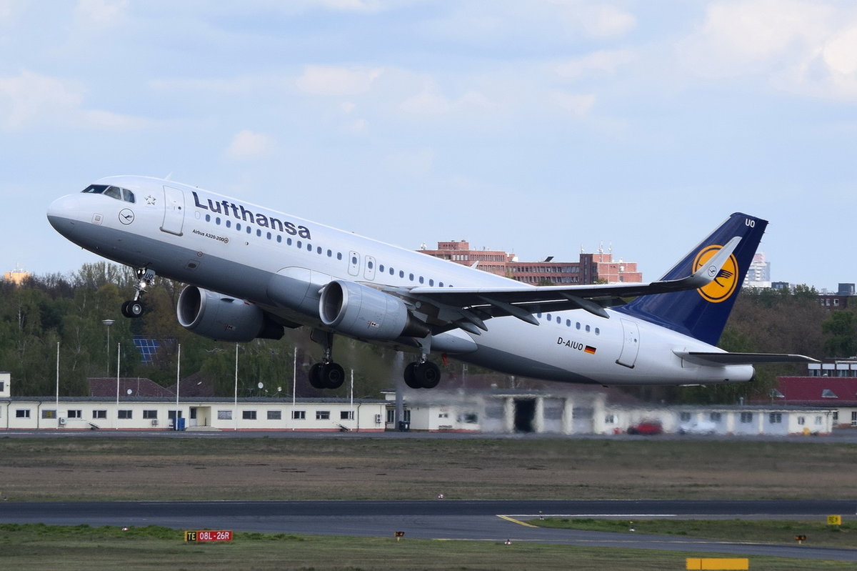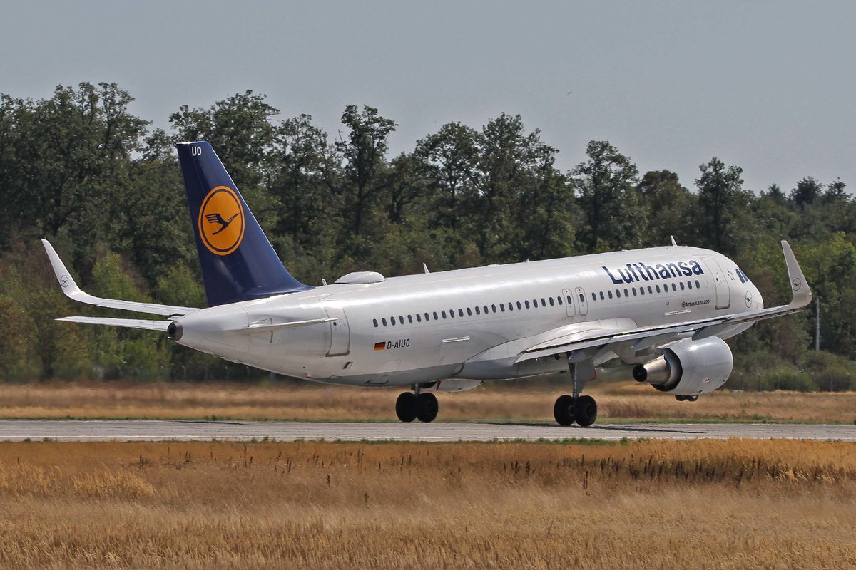 Ein A320 D-AIUO mit Sharklets der Lufthansa beim Start in Frankfurt, im Hintergund befindet sich eine MD-11F D-ALCN der Lufthansa Cargo auf dem weg zum Line-up der Startbahn West. Die Aufnahme entstand am 6.8.16 Jens Hubers