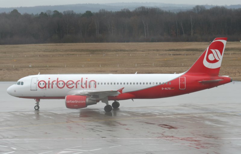 Air Berlin A 320-214 D-ALTG am 10.03.2009 auf dem Flughafen Köln-Bonn im strömenden Regen