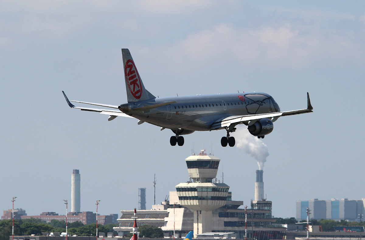 Niki(Air Berlin) ERJ-190-100LR D-ARJC bei der Landung in Berlin-Tegel am 18.06.2013
