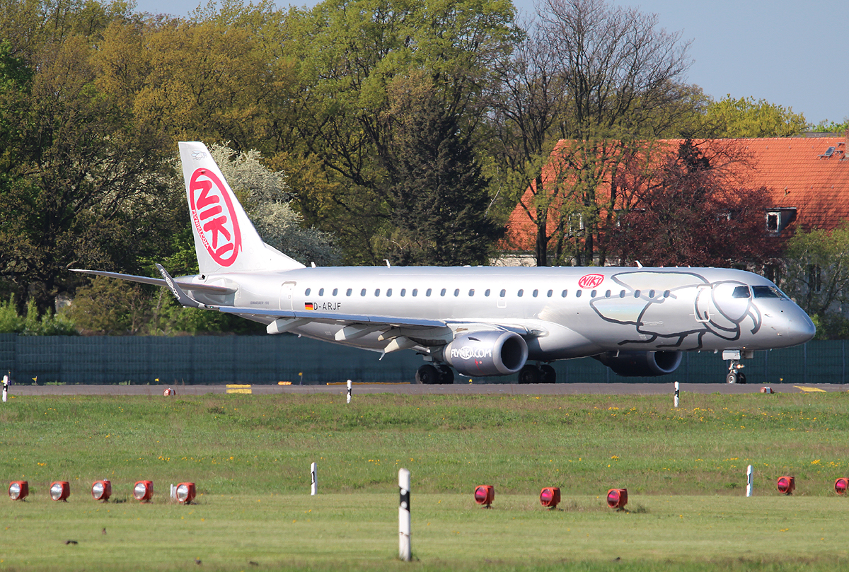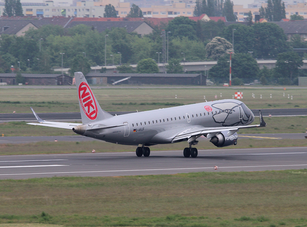 Niki(Air Berlin) Embraer ERJ-190-100LR D-ARJF bei der Landung in Berlin-Tegel am 05.05.2013
