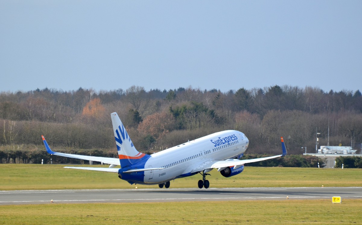 Die SunExpress Germany Boeing 737-800 D-ASXA beim Start in Hamburg Fuhlsbüttel am 10.03.15