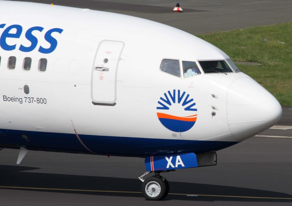 Ein weiterer Blick auf Boeing 737-800 (D-ASXA | 28178) der SunExpress, die im Flughafen Leipzig/Halle steht. Aufgenommen während einer Besichtigungstour mit dem Bus. Die Aufnahme stammt von Theodor Wolf und wurde zur Veröffentlichung freigegeben. [© Theodor Wolf | August 2017]