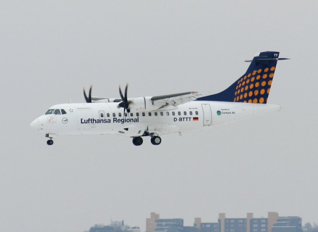 Lufthansa Regional (Contact Air) ATR-42-500 D-BTTT kurz vor der Landung in Stuttgart am 10.03.2010