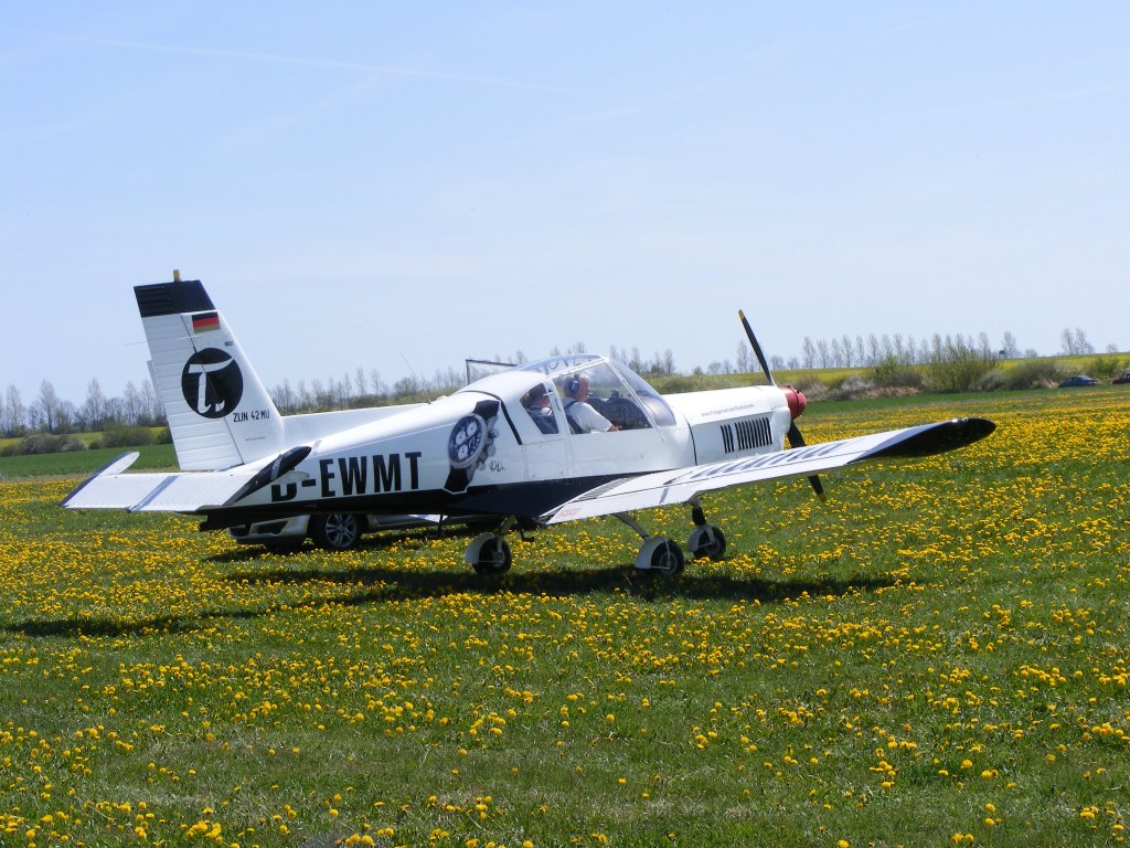 Zlin 42 D-EWMT (ex.DDR-WMT) auf dem Flugplatz Alkersleben (EDBA) am 28.4.2012