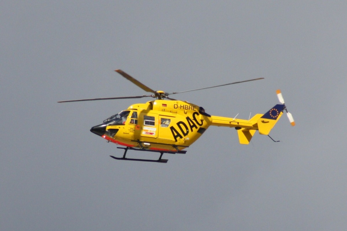Der Christoph Rheinland (MBB BK-117, D-HBRE) landet für einen kurzen Stopp auf dem Flugplatz Magdeburg. Fotografiert am 07.06.2013 Christian Geschonneck