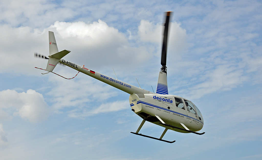 R 44 Raven II D-HNEL kurz nach dem Start zu einem Rundflug - Kirchheim 14.08.2010