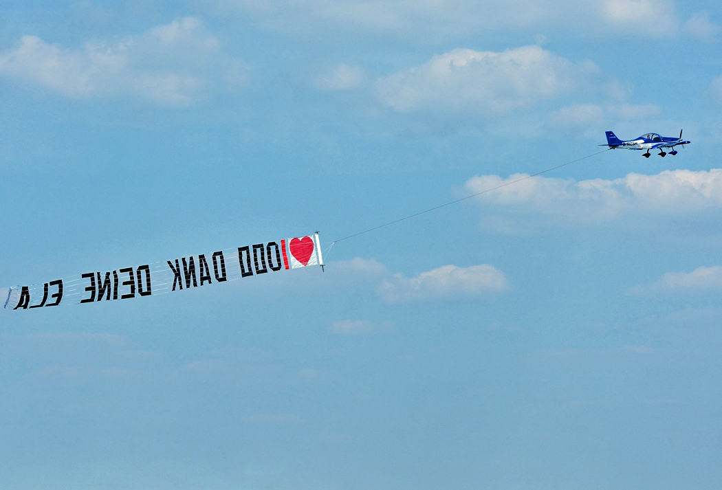 Breezer B 400, D-MZSH mit Banner in Bonn-Hangelar - 22.08.2015