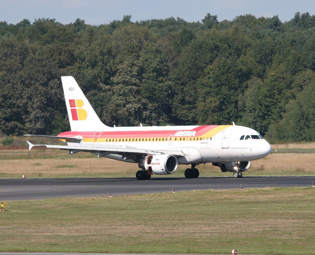 Iberia A 319-111 EC-HGS bei der Ankunft auf dem Flughafen Berlin-Tegel am 30.08.2009