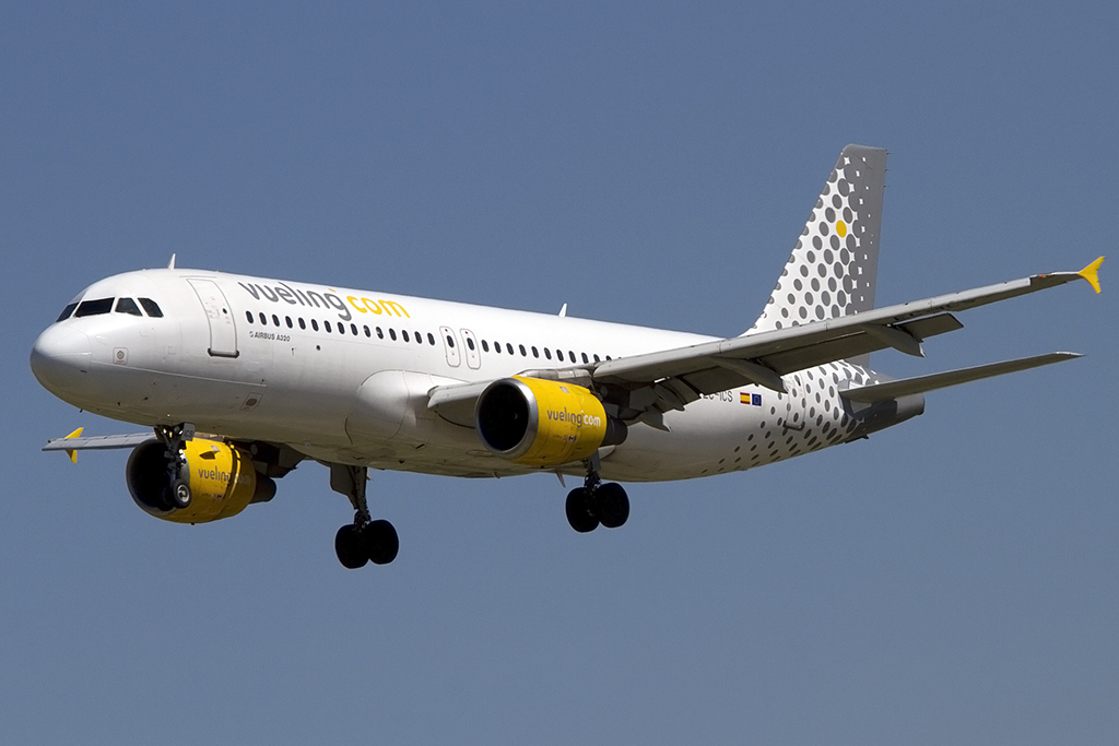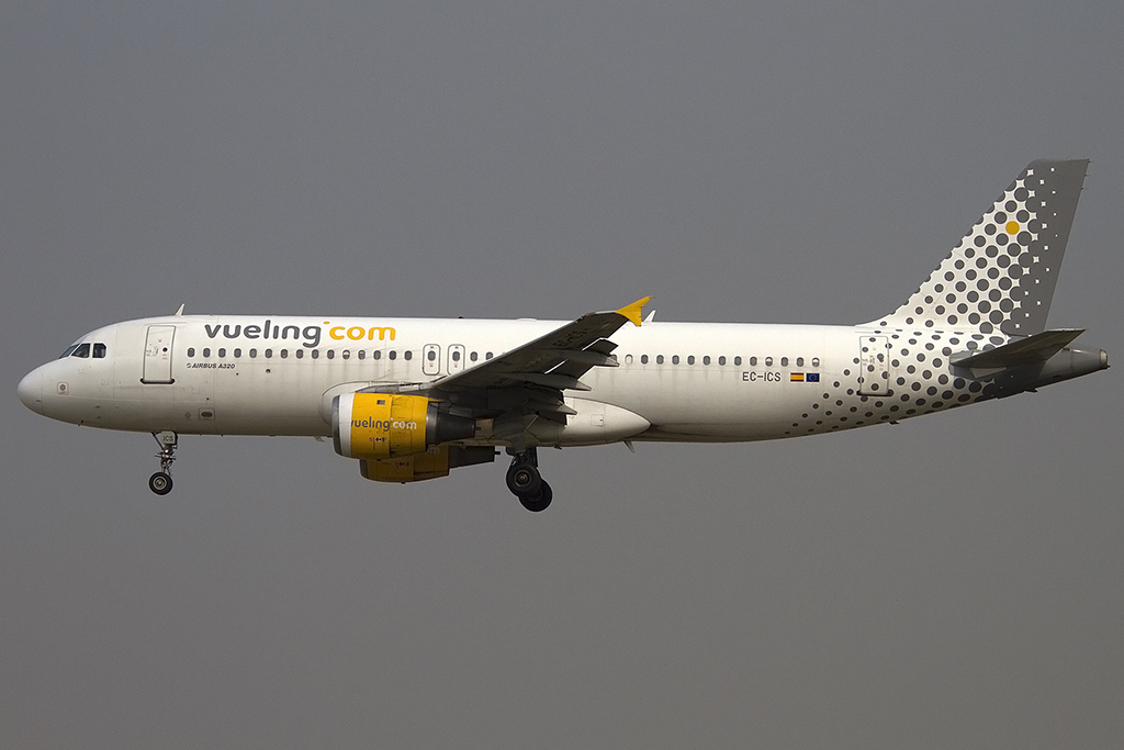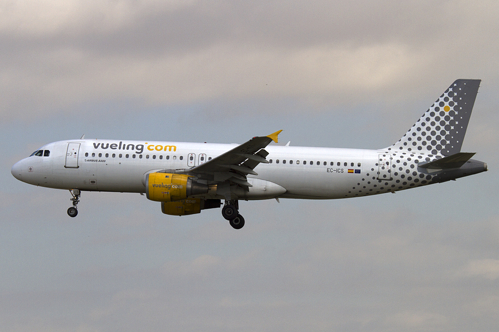 Vueling Airbus A320-211 EC-ICS hat nach der Landung auf der "Polderbaan" (18R) wieder festen Boden unter ihren Rädern; Flughafen Schiphol Amsterdam am 13 Juni 2011. Hans V.