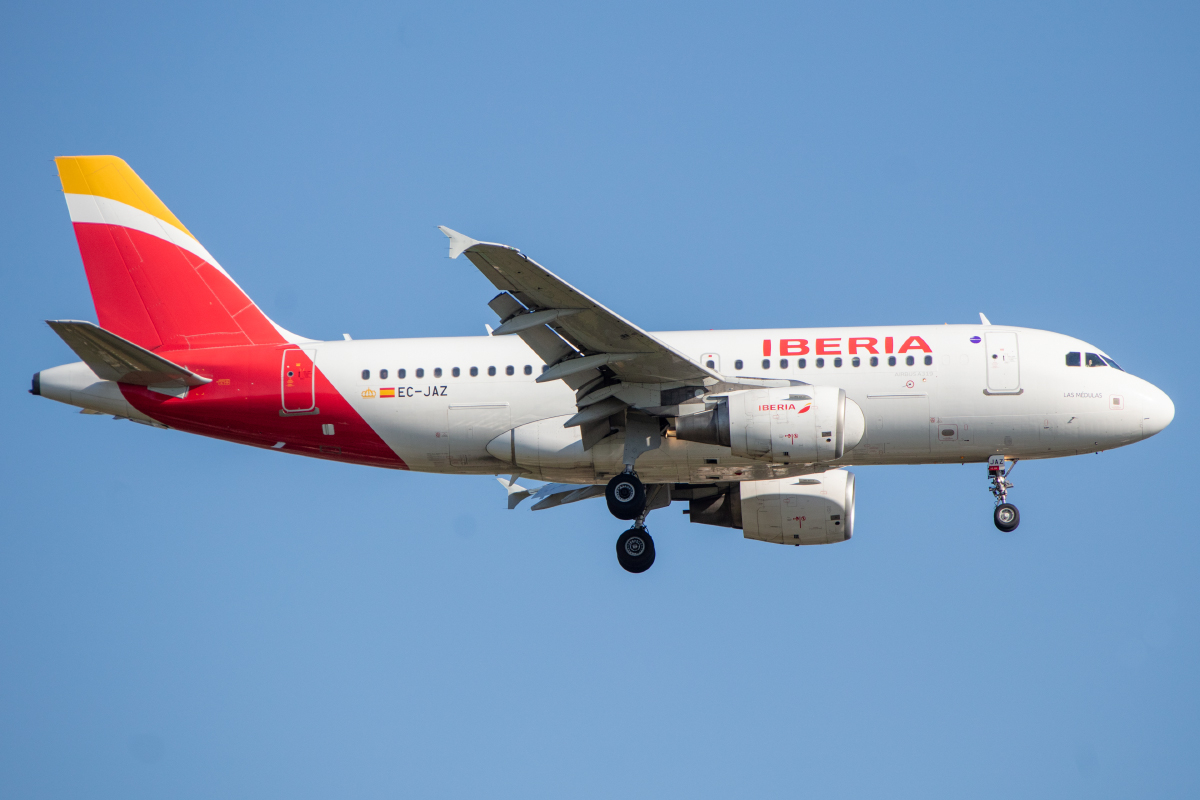 Iberia, EC-JAZ, Airbus A319. Bei starkem Ostwind starten die Flugzeuge von der Startbahn 10 und kommen so sehr dicht am Zaun vorbei. Gut für alle Spotter, die so zu guten Bildern kommen, ohne ein grosses Teleobjektiv benutzen zu müssen. 5.4.2007 Jürgen Walter