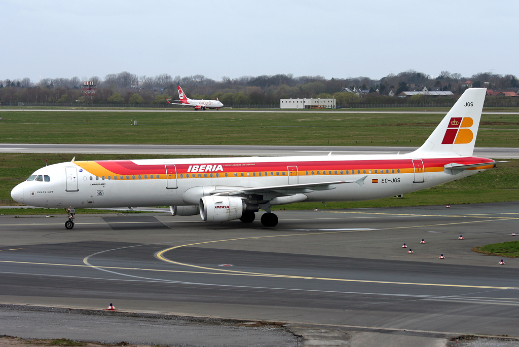 Iberia A321 EC-JGS verlässt die 05R in DUS / EDDL / Düsseldorf am 17.03.2008