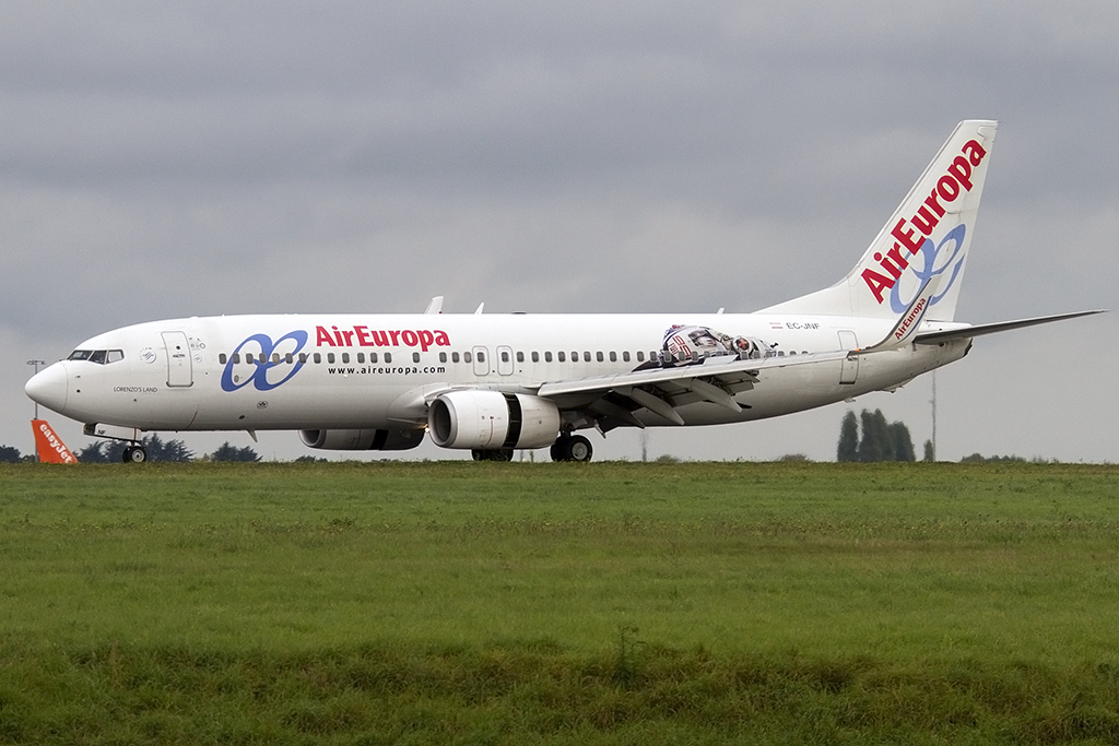 Air Europa, EC-JNF,(c/n 33977),Boeing 737-85J(WL), 04.06.2016, HAM-EDDH, Hamburg, Germany (Name: Jorge Lorenzo s Land)