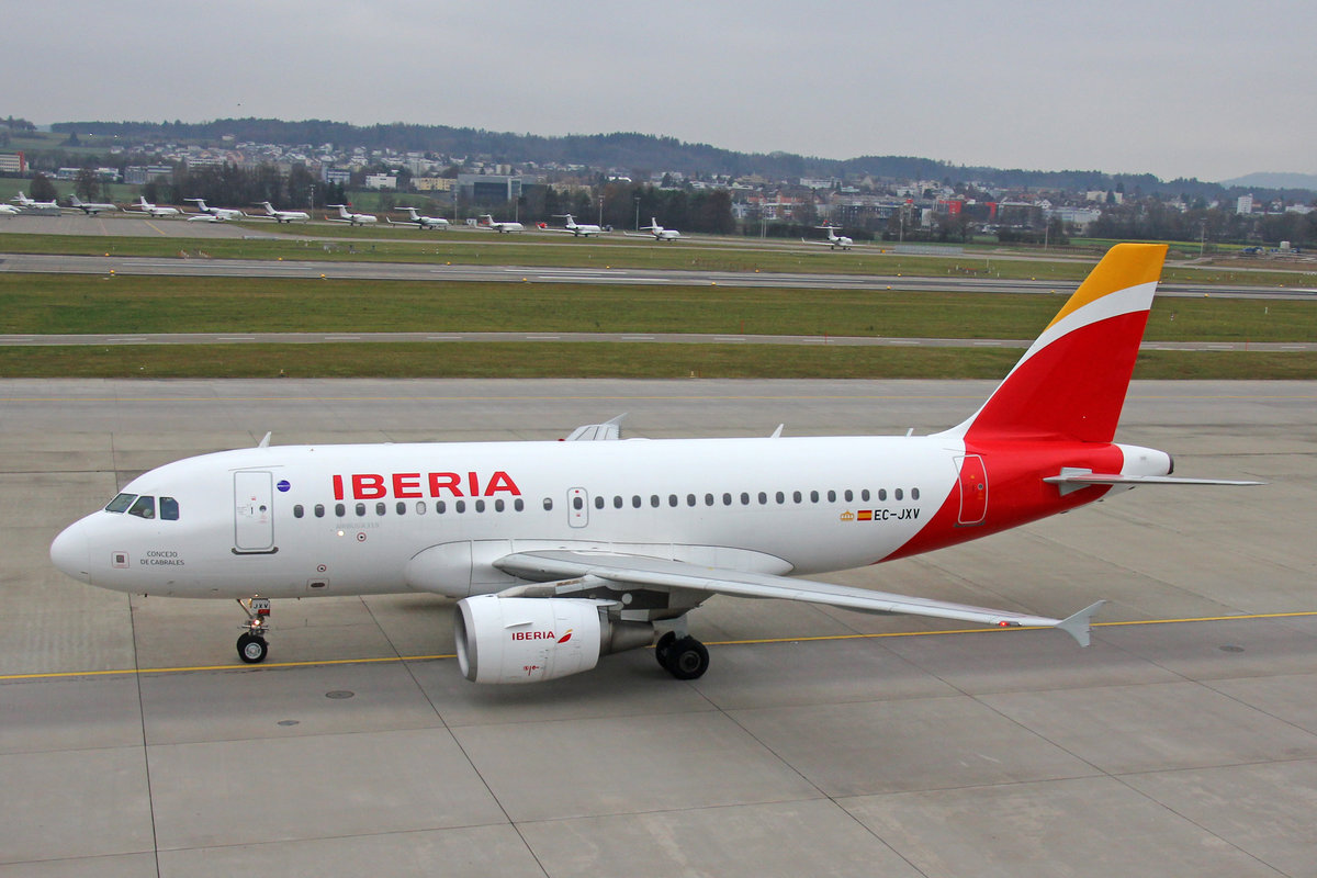 Iberia, EC-JXV, Airbus A319-111, 3.Dezember 2016, ZRH Zürich, Switzerland.