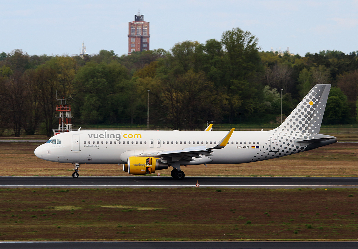 EC-MAN Vueling Airbus A320-214(WL) zum Gate in Schönefeld am 07.06.2015