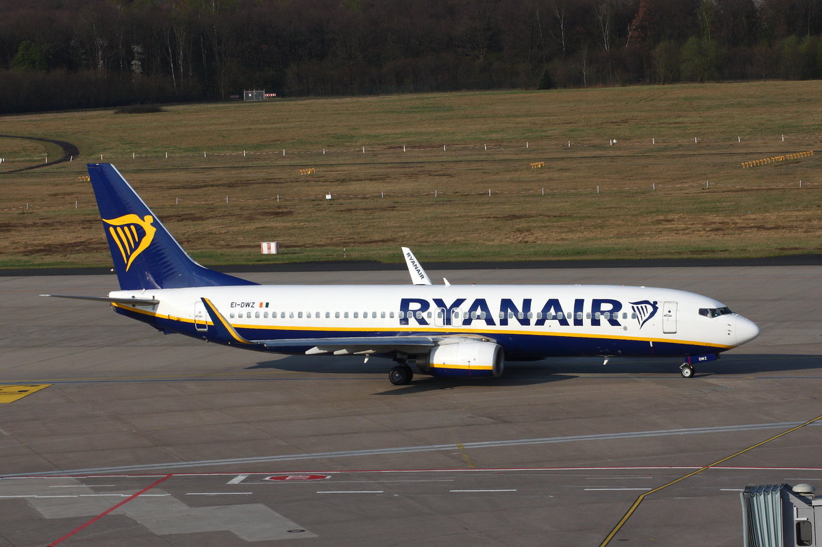 Ryanair, EI-DWZ, Boeing 737-800, gestartet in Köln-Bonn (CGN/EDDK) zum Flug nach Madrid (MAD). Aufnahmedatum: 02.04.2017