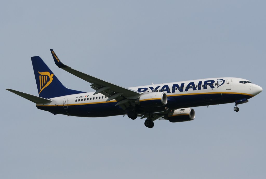 Seit dem 30.03.2011 bietet Ryanair Flüge zu vier verschiedenen Zielen von Magdeburg-Cochstedt (CSO/EDBC) aus an. Hier ist eine Boeing 737-800 mit der Kennung EI-DYS aus Girona im Landeanflug auf Cochstedt zu sehen. Fotografiert am 02.04.2011. Christian Geschonneck
