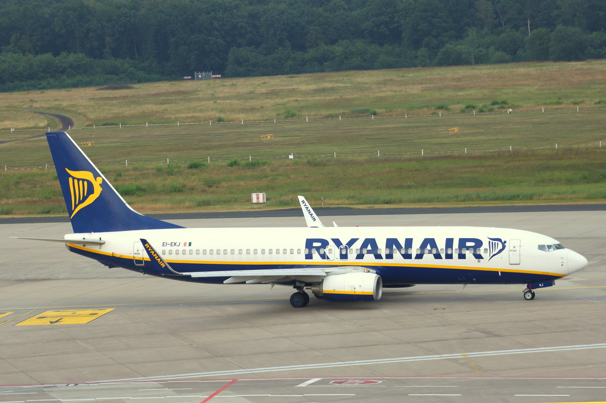 Ryanair, EI-EKJ, Boeing 737-8AS, Köln-Bonn (CGN), rollt zum Start nach Warschau-Modlin (WMI). Aufnahmedatum: 24.07.2016