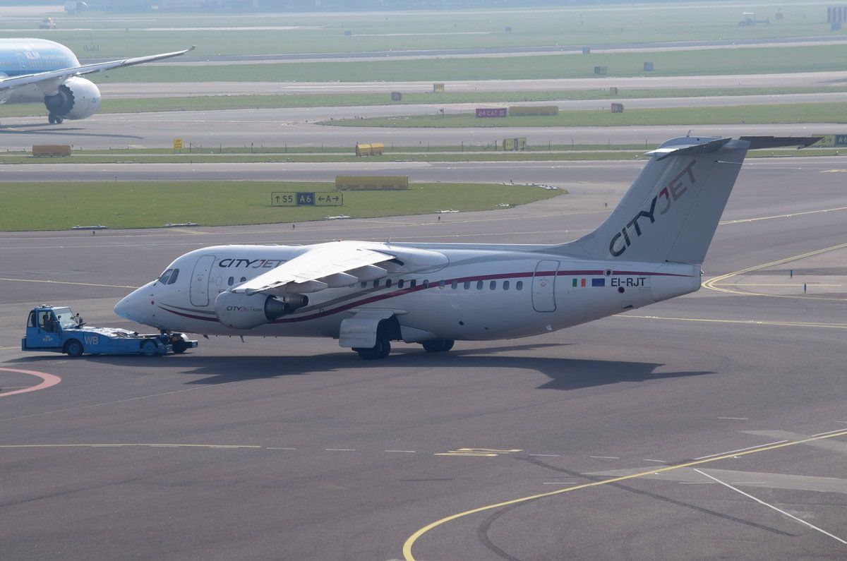 . EI-RJT  CityJET Britisch Aerospace Avro RJ 185 rollt über das Rollfeld zur Startbahn des Flughafens Schiphol (AMS/EHAM) von Amsterdam.  01.10.2016