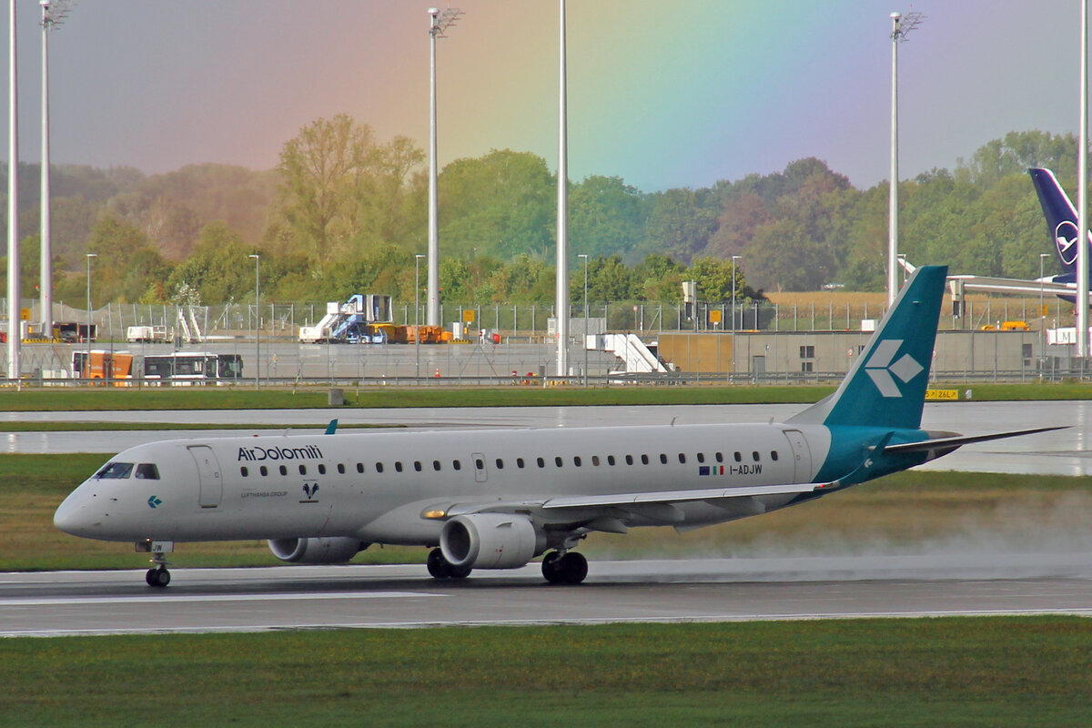 Air Dolomiti, I-ADJZ, Embraer Emb-195LR, msn: 19000316, 10.September 2022, MUC München, Germany.