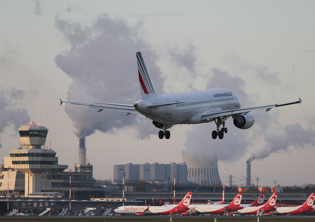 Air France A 320-214 F-GKXZ bei der Landung in Berlin-Tegel am 11.01.2014