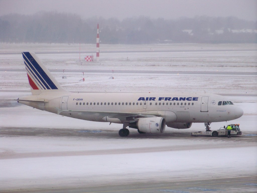 Air France, A319-112, F-GRHH auf dem Hamburger Flughafen. Aufgenommen am 19.12.09.