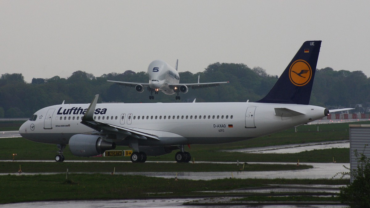 Lufthansa,D-AXAO,Reg.D-AIUE,(c/n 6092),Airbus A320-214(SL),XFW-EDHI,Hamburg-Finkenwerder,Germany(Landet:Beluga 5,Airbus Industrie,F-GSTF) Henryk Konrad