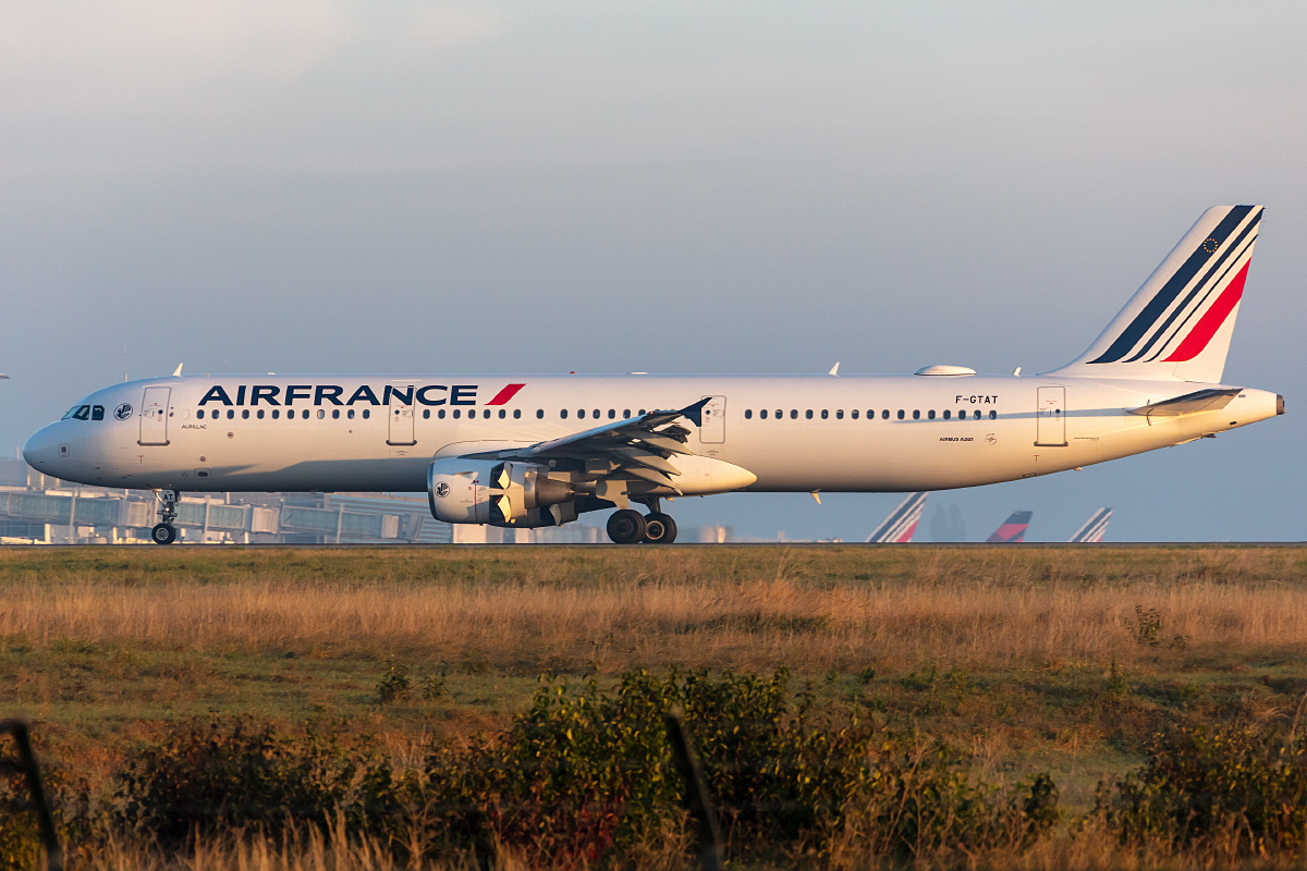 . F-GTAT Airbus 321–212 von Air France, ist vor kurzem gelandet und rollt seinem Stellplatz am Gates auf dem Flughafen Schiphol entgegen. 25.09.2016 (Jeanny) De Rond Hans und Jeanny