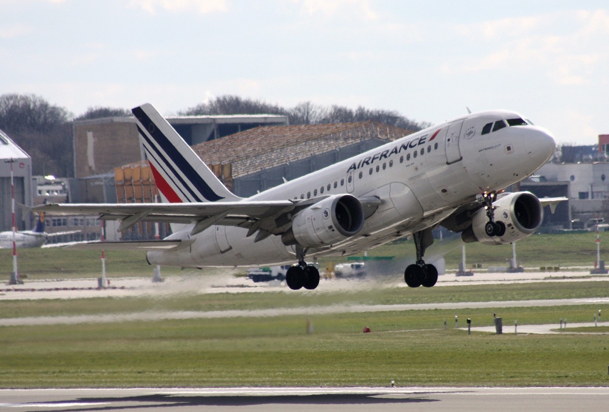 Air France A 318-111 F-GUGC beim Start in Düsseldorf am 11.03.2013